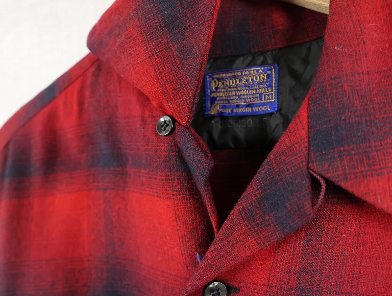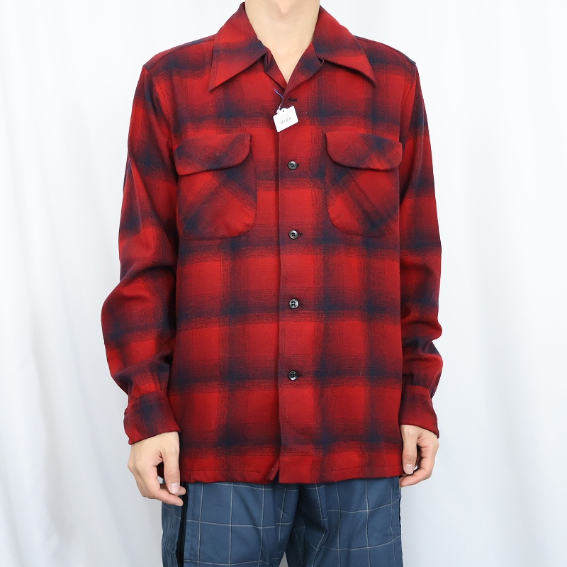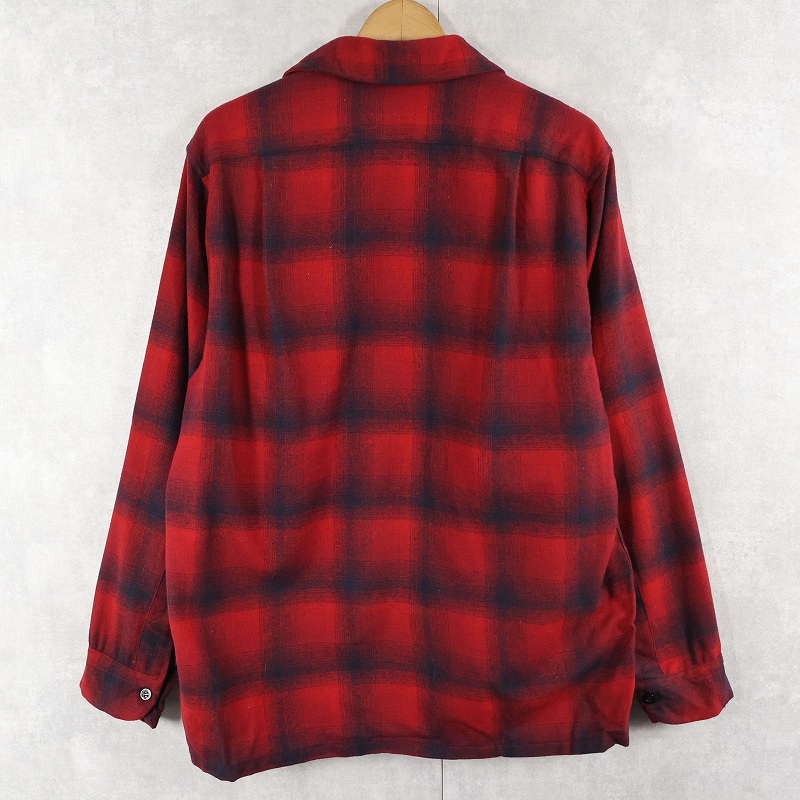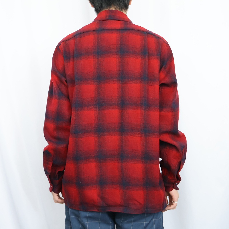 70's PENDLETON オンブレーチェック柄 ウールオープンカラーシャツ M [160970]