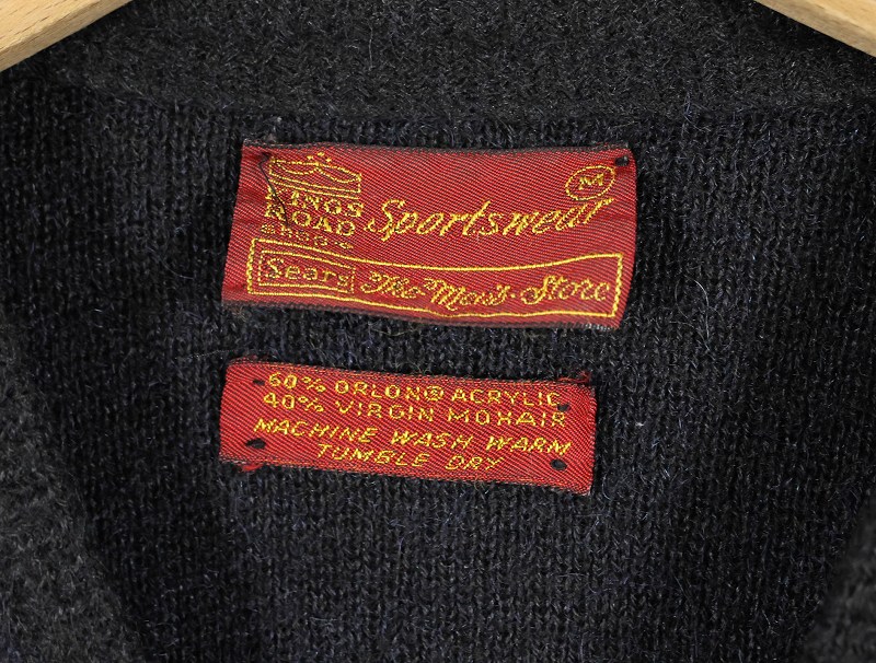 60's Sears KINGS ROAD モヘアニットカーディガン BLACK M [160982]