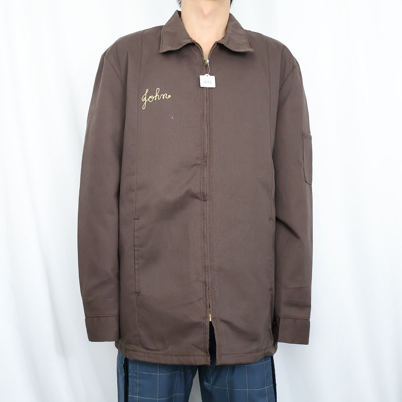 80's RED KAP USA製 チェーン刺繍 ワークジャケット BROWN L [161005]