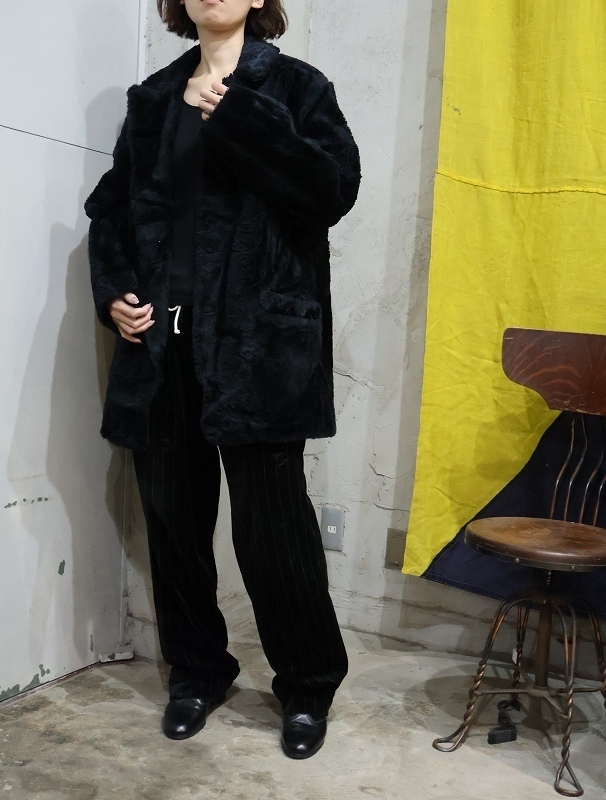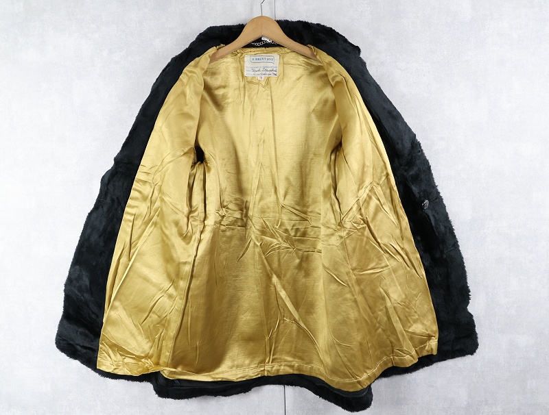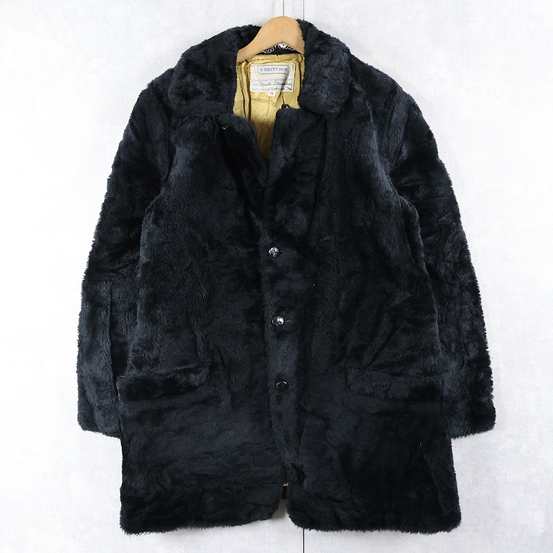 60〜70's BRENT フェイクファーコート BLACK SIZE18 [161007]