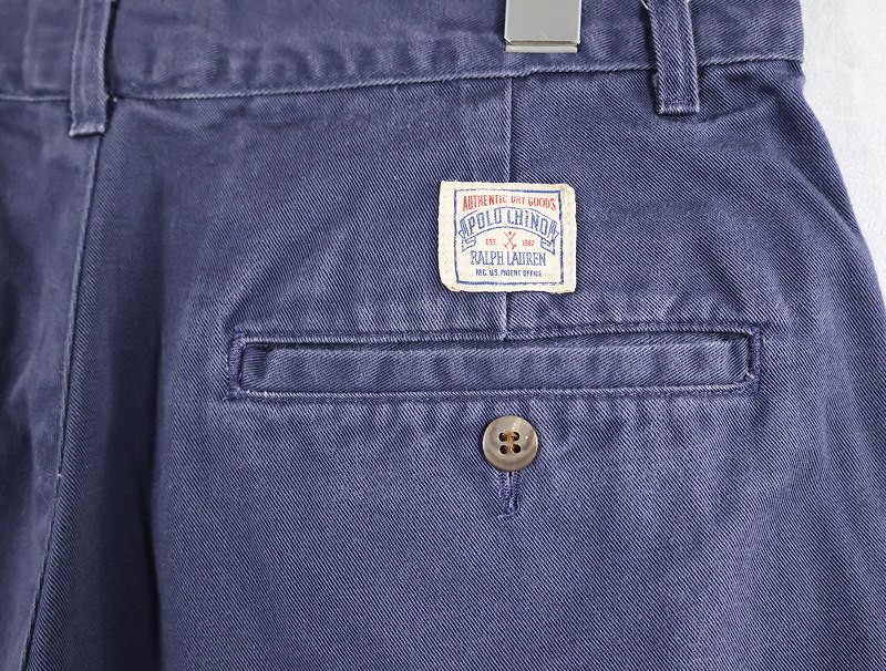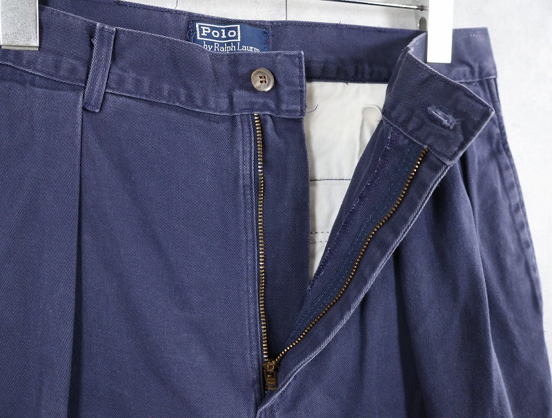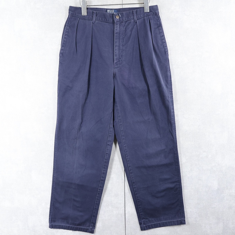 90's POLO Ralph Lauren USA製 "POLO CHINO" 2タック コットンチノトラウザーズ NAVY W31 [161014]