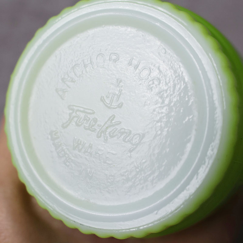 60〜70's Fire-King USA製 スタッキング リブボトムマグ GREEN [161065]