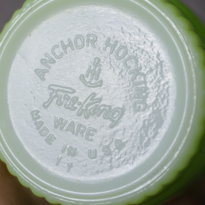 60〜70's Fire-King USA製 スタッキング リブボトムマグ GREEN [161066]
