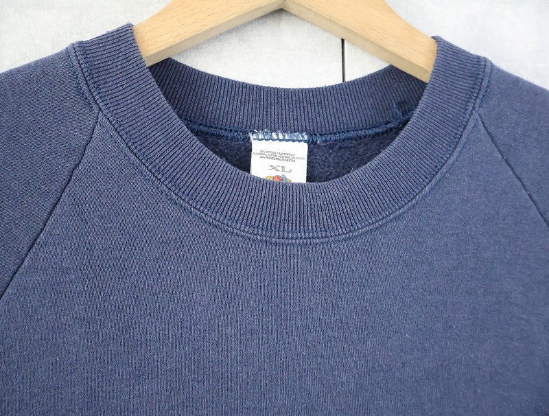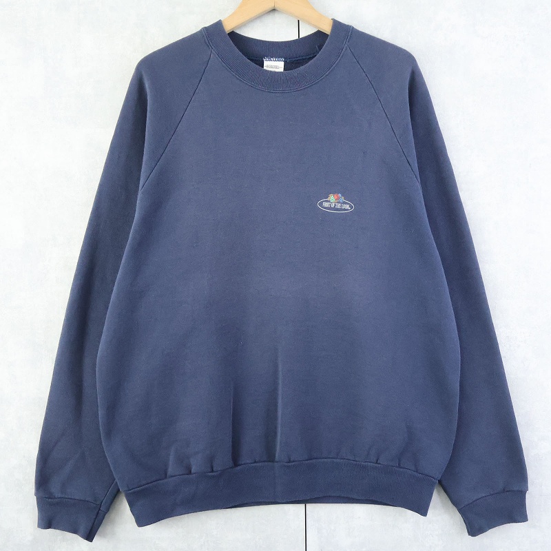 90's FRUIT OF THE LOOM ロゴプリント ラグランスウェット NAVY XL [161070]
