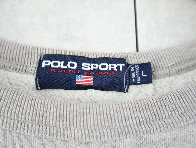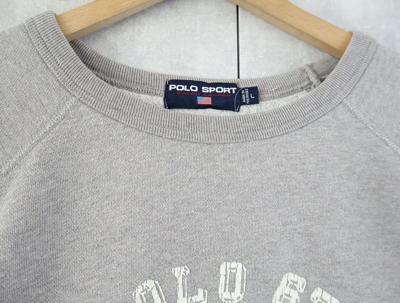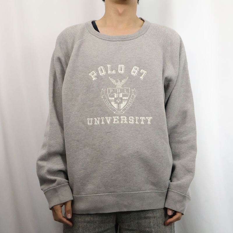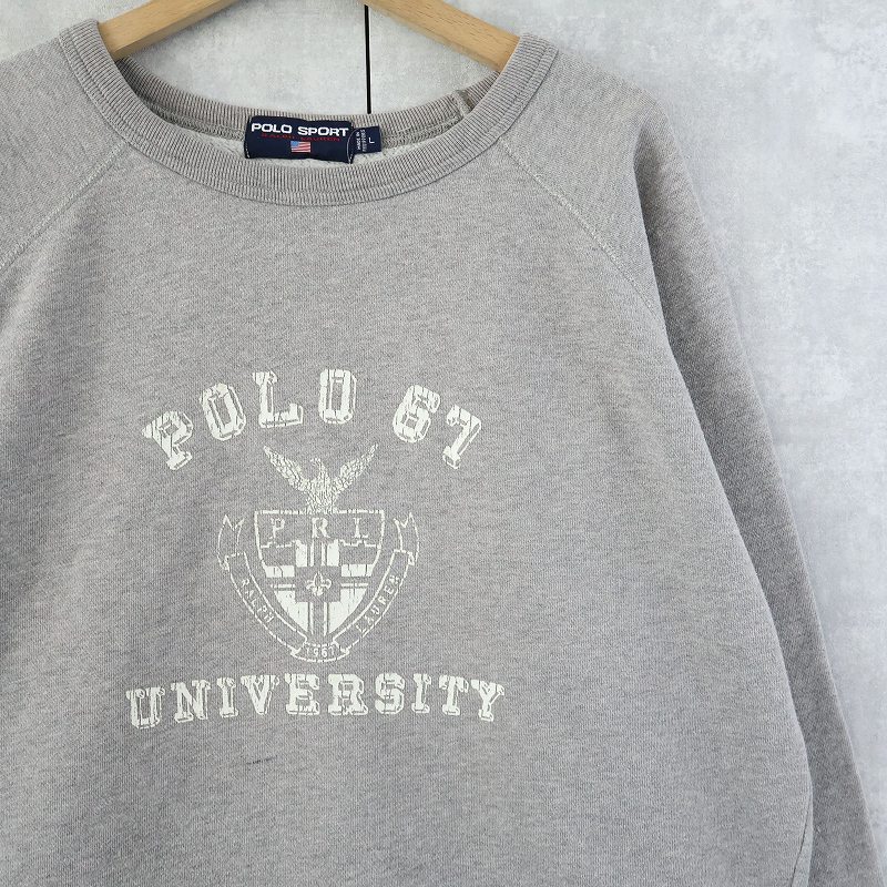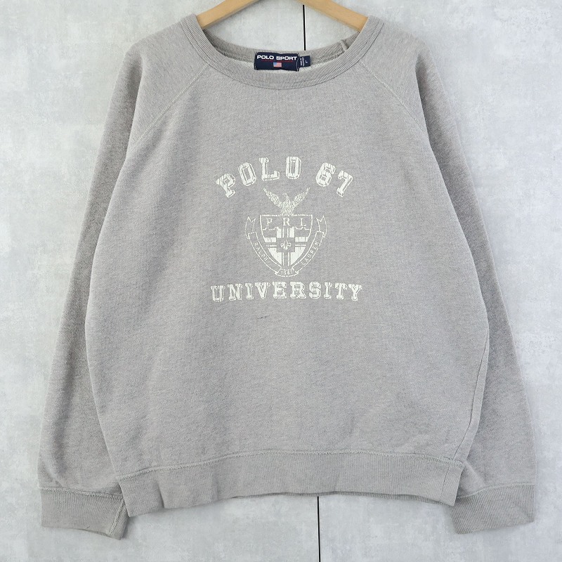 90's POLO SPORT Ralph Lauren "POLO 67 UNIVERSITY" プリントラグランスウェット L [161071]