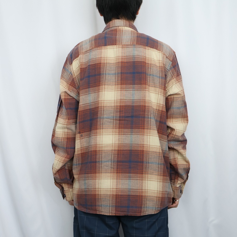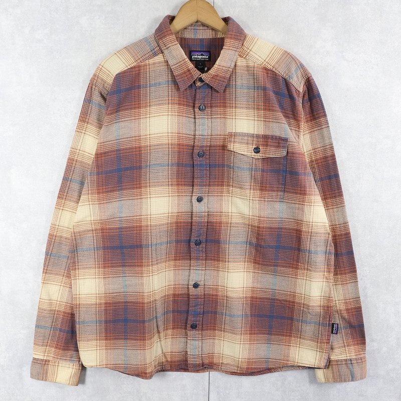 2019AW Patagonia "ORGANIC COTTON" 猫目ボタン オンブレーチェック柄 ネルシャツ M [161081]