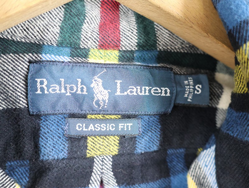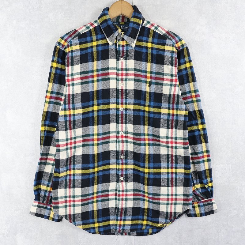 Ralph Lauren "CLASSIC FIT" チェック柄 ロゴ刺繍 コットンボタンダウンシャツ S [161084]