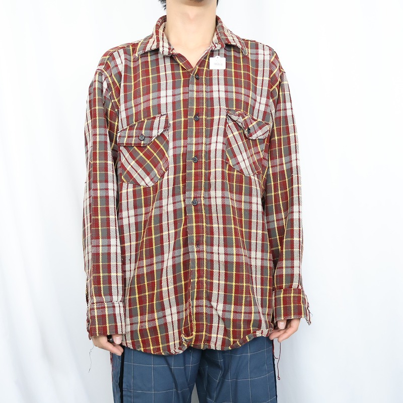 70's FROSTPROOF USA製 チェック柄 ヘビーネルシャツ XL [161086]