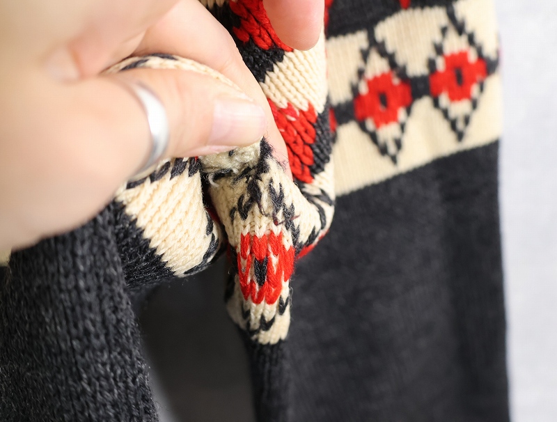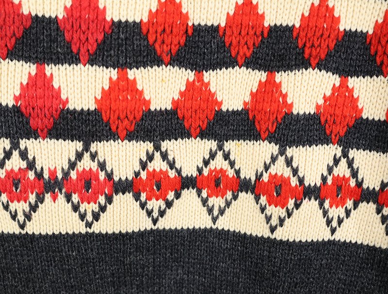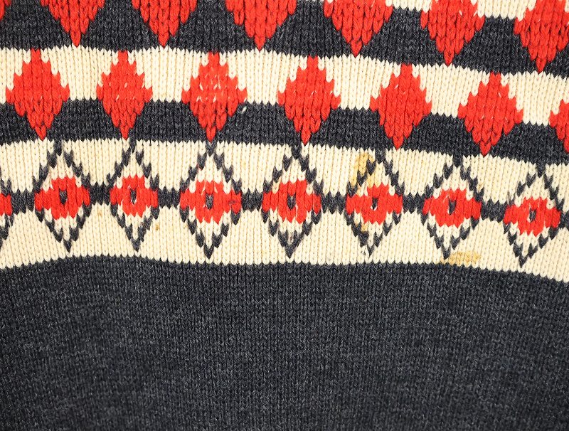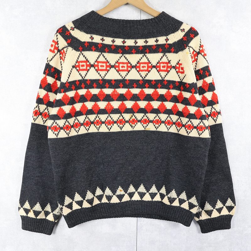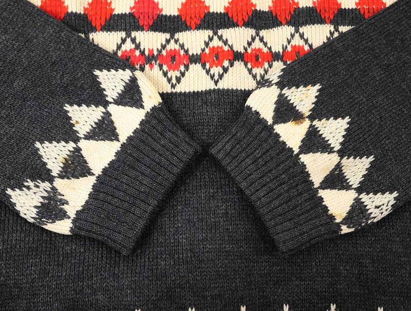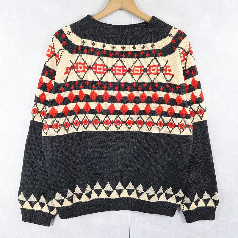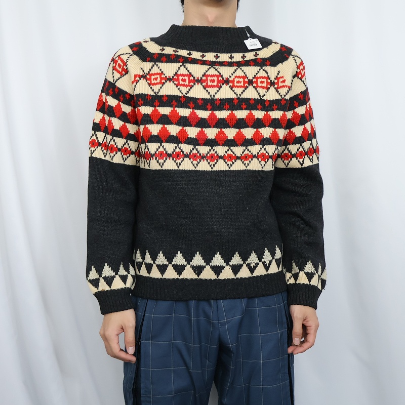〜60's ノルディック柄 モックネック ウールニットセーター CHARCOAL GRAY [161093]