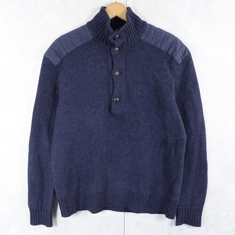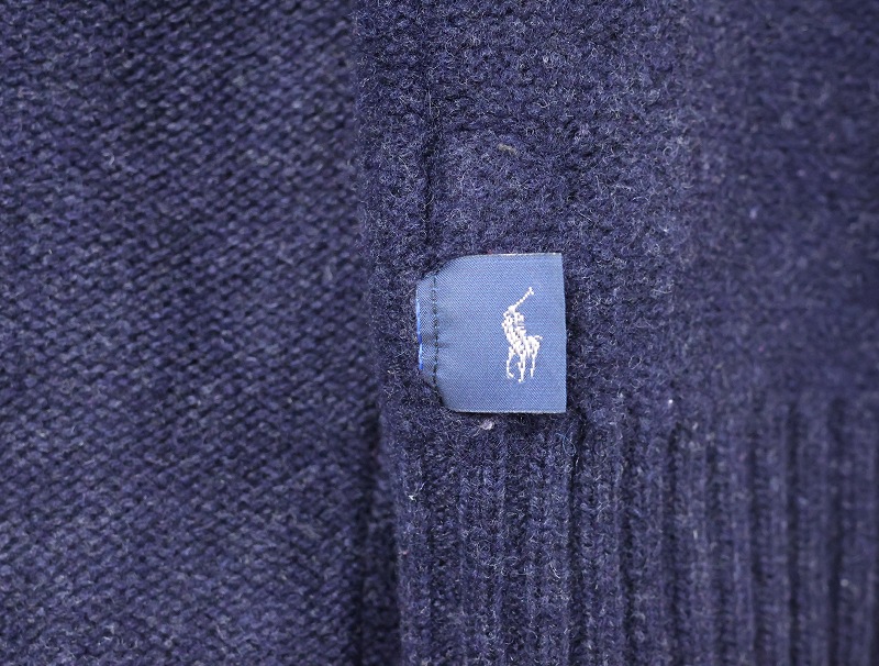 POLO Ralph Lauren ショルダーパッチ付き ハーフボタン ニットセーター NAVY M [161106]