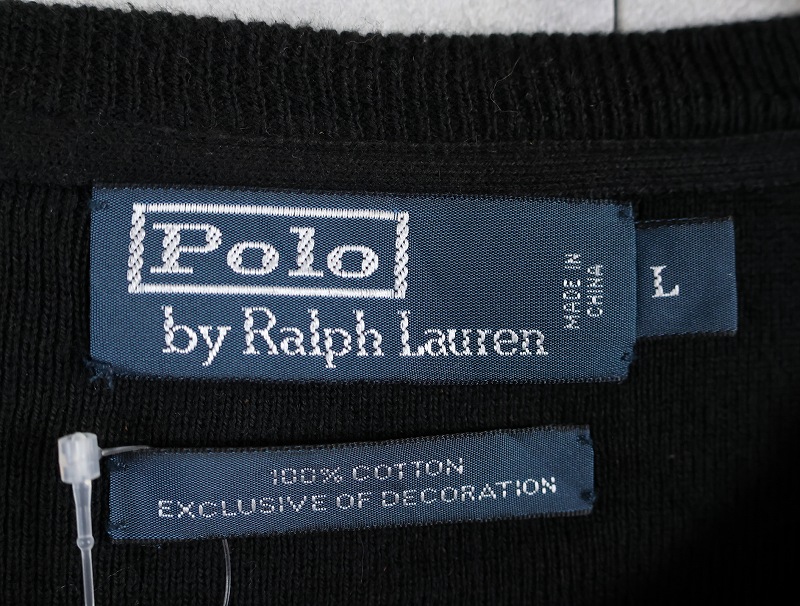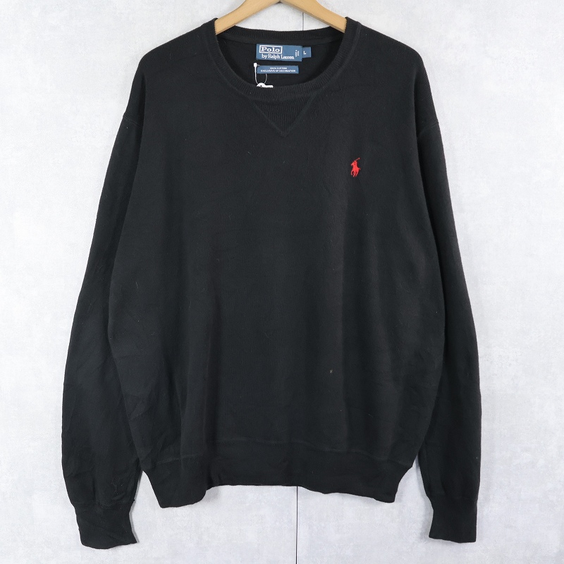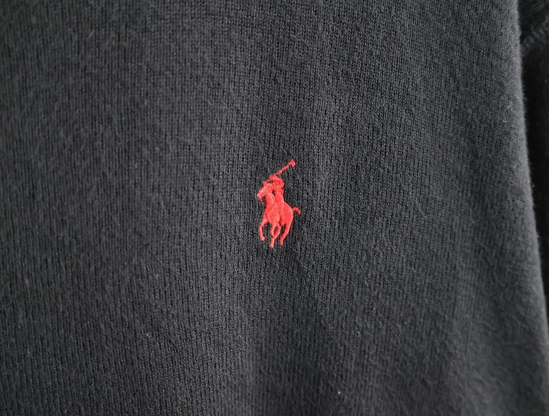 POLO Ralph Lauren ロゴ刺繍 前V コットンニットセーター BLACK L [161108]
