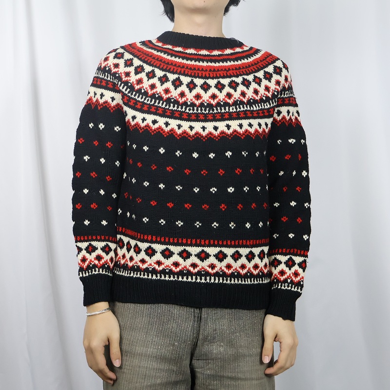 〜60's Fritsch Switzerland製 ノルディック柄 ウールニットセーター [161140]
