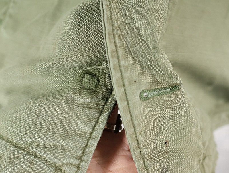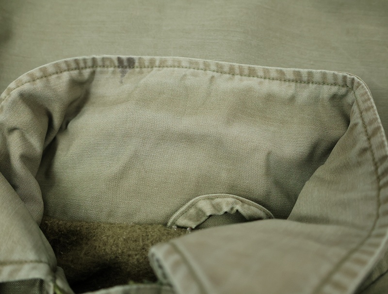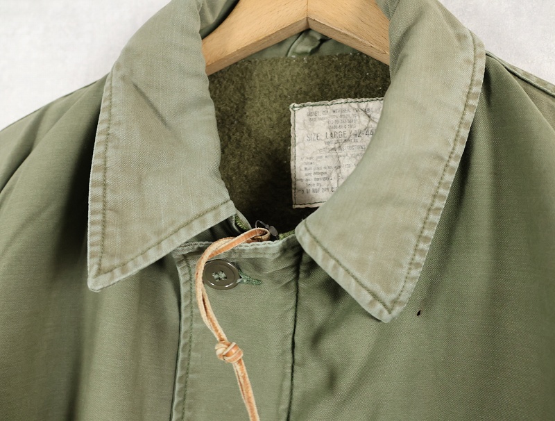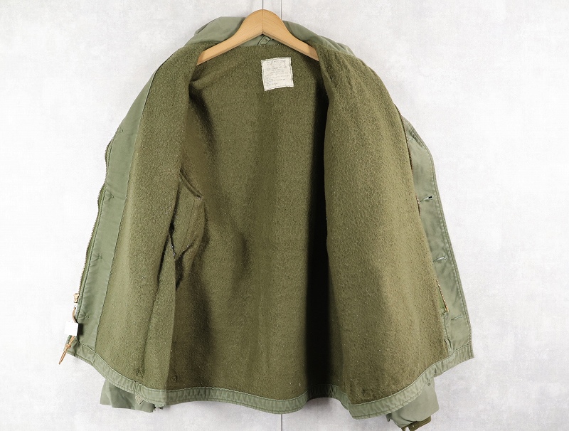 内側のアクリルパイル、肩まわりの動きを妨げないセットインスリーブ、防風性を高める比翼前立てなど、当時の海軍衣料らしい機能がしっかりと盛り込まれています。
