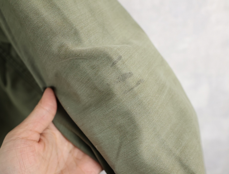 - よごれや小穴、袖口にダメージ、最下部ボタンの欠損がありますが、とても雰囲気の良い一点です。