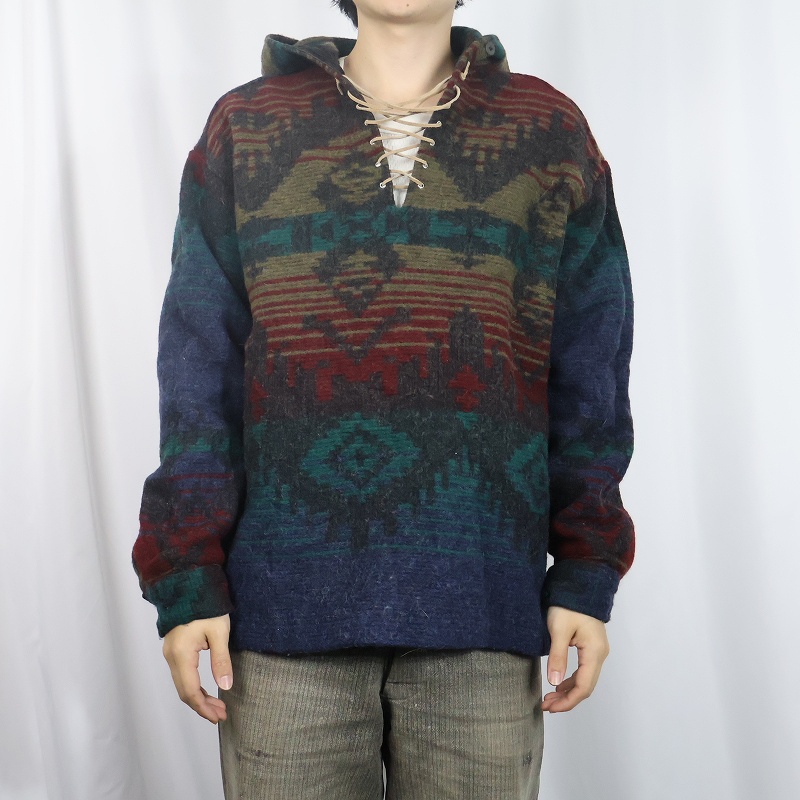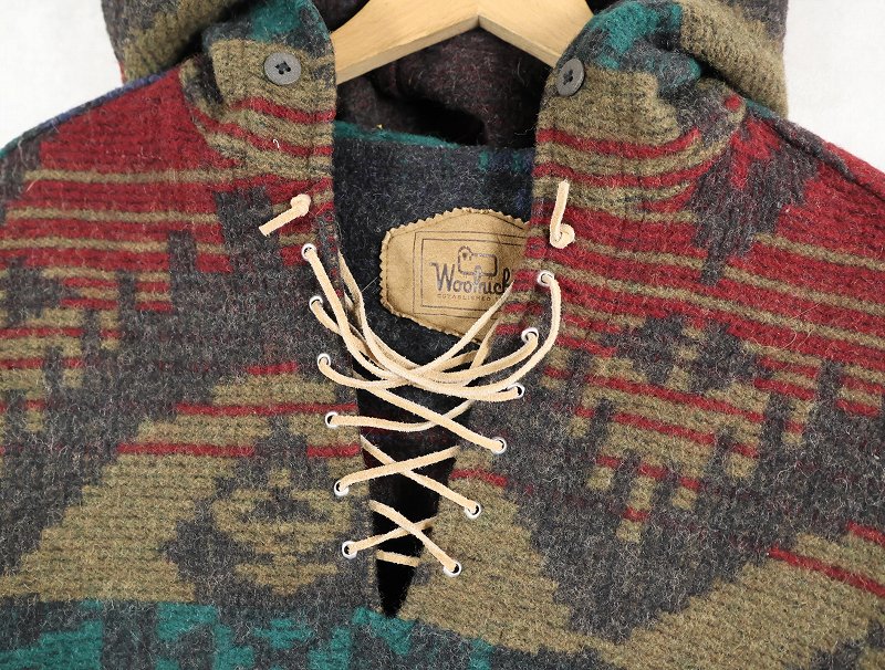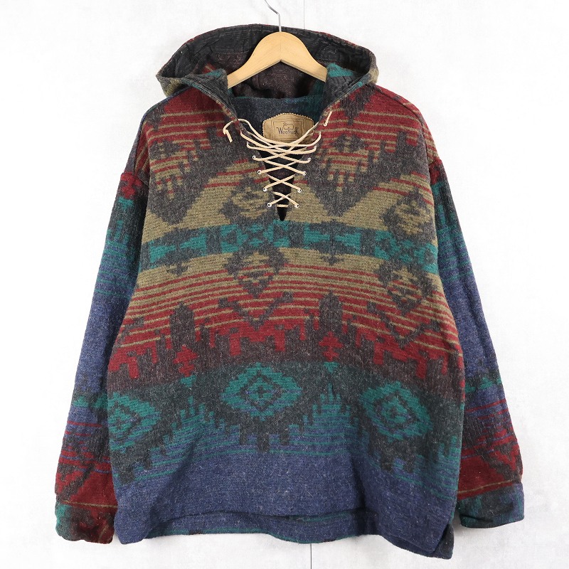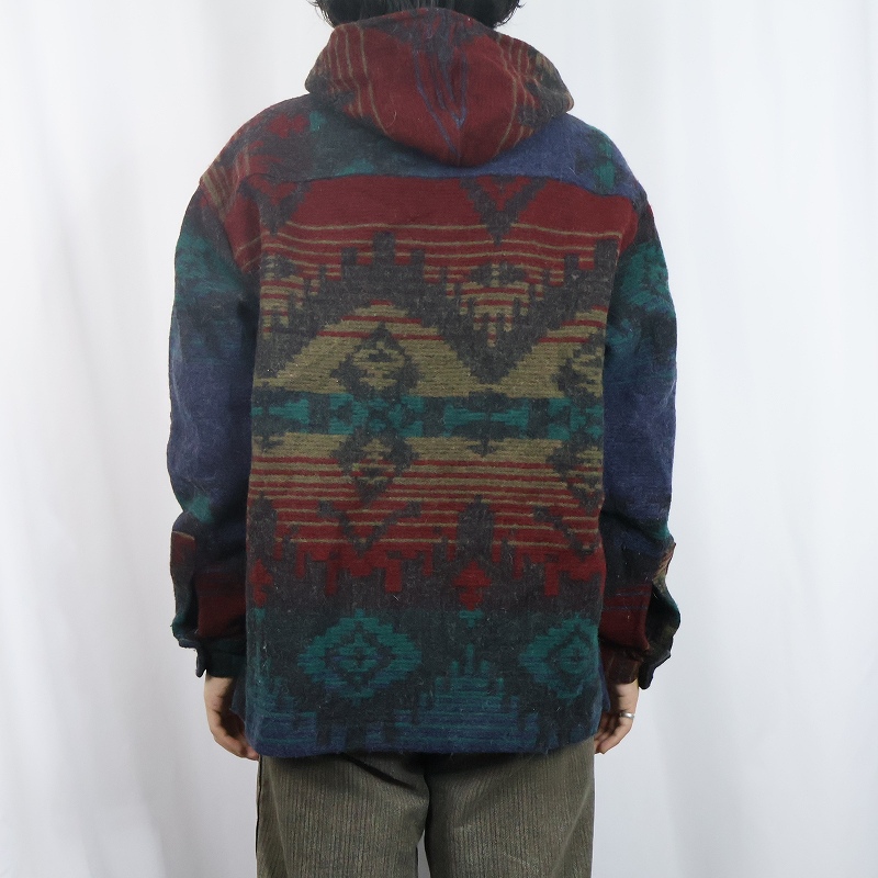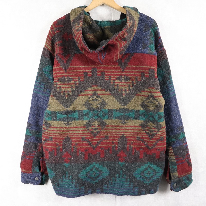 90's Woolrich USA製 総柄 ウールアノラックパーカー XL [161175]
