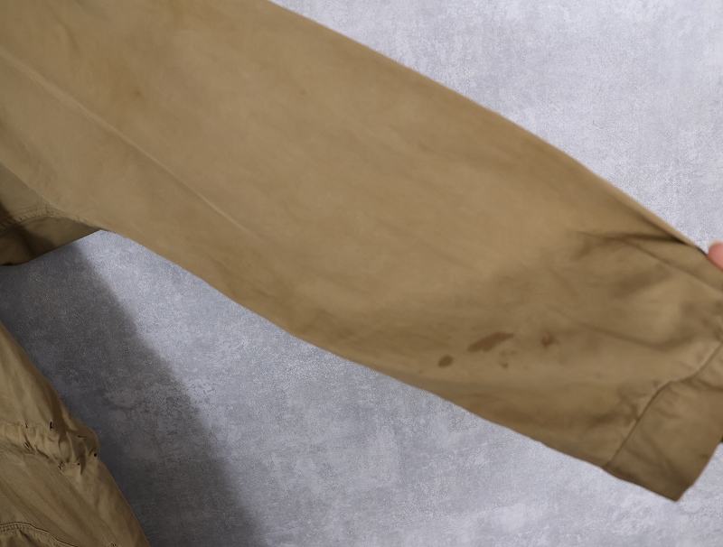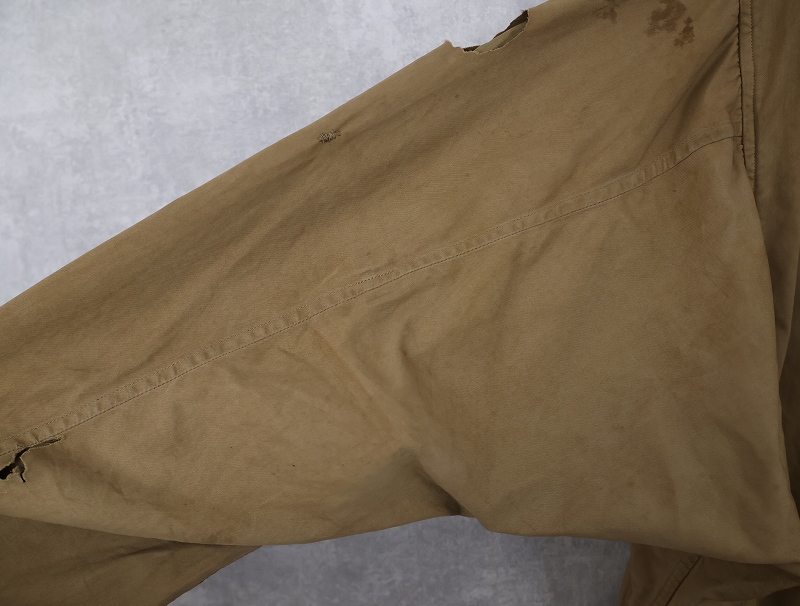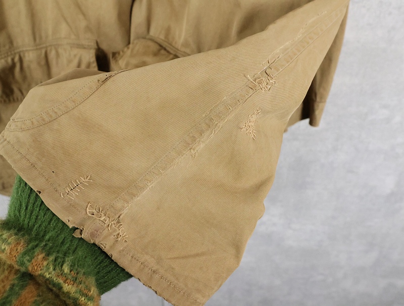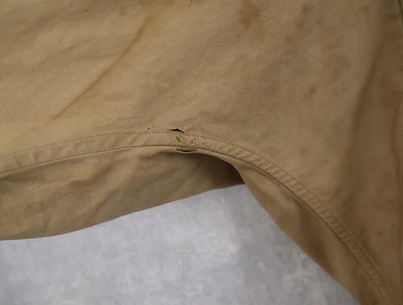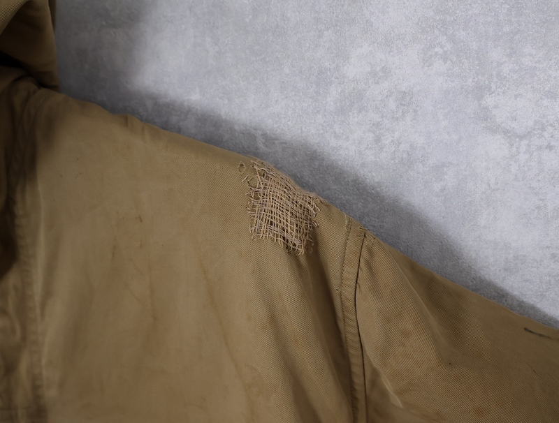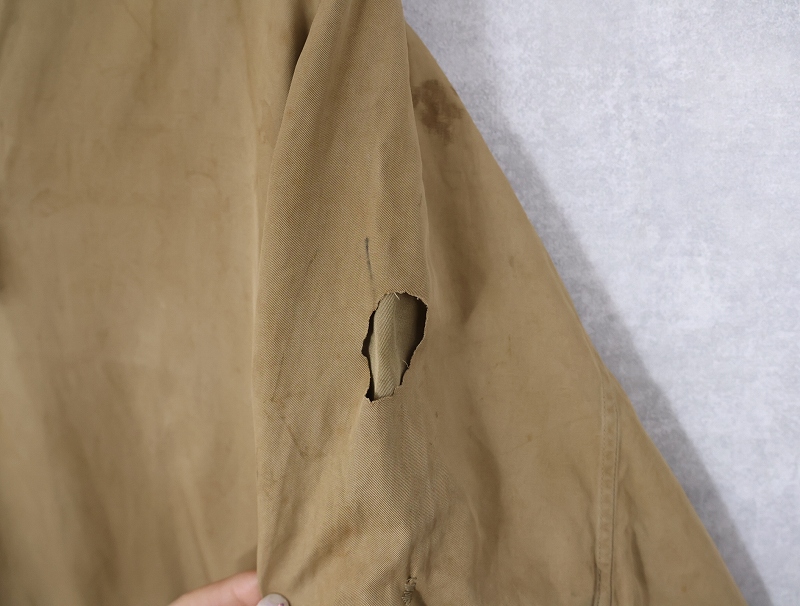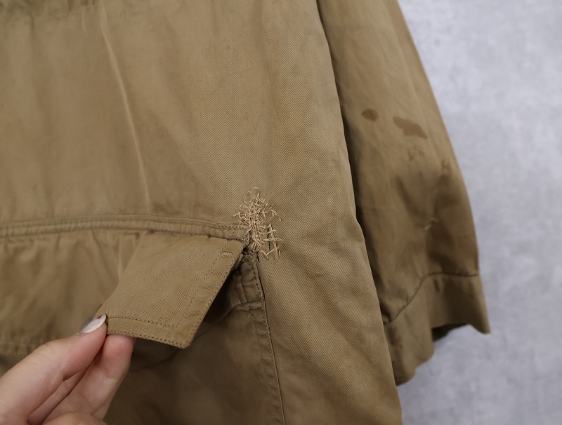 - 生地の劣化による裂け・小穴や、リペア跡、よごれがありますがありますが、雰囲気が出ており、大変かっこいい一点です。