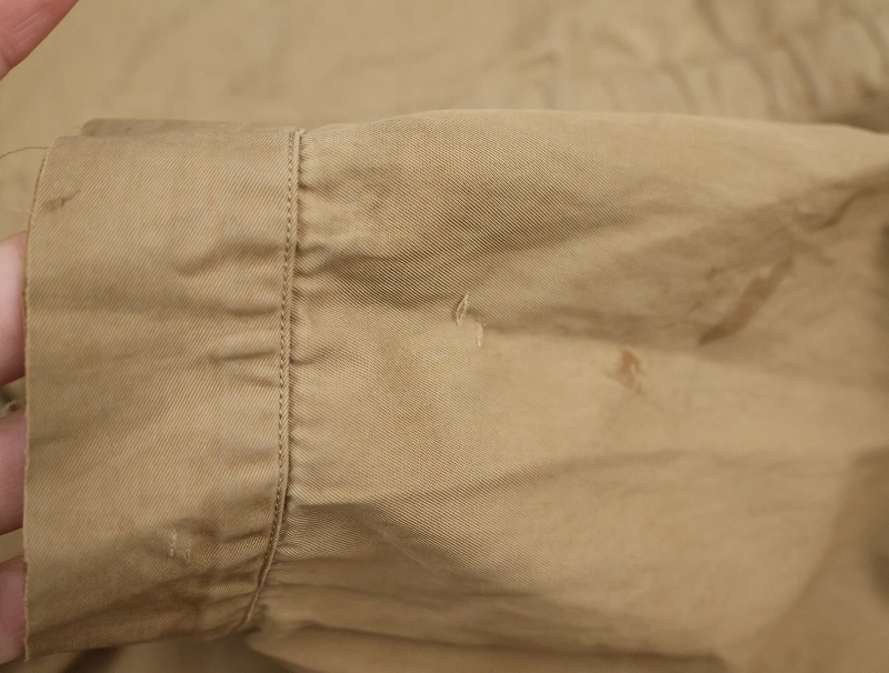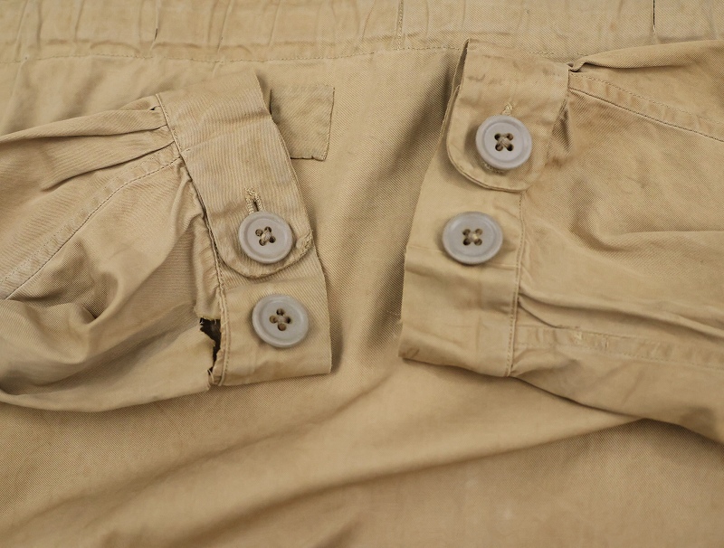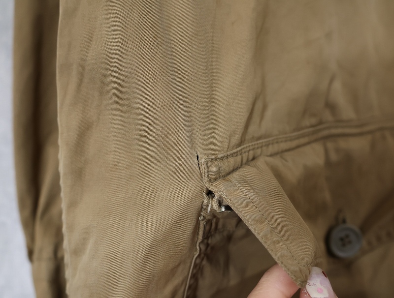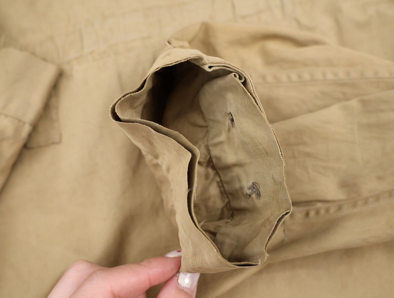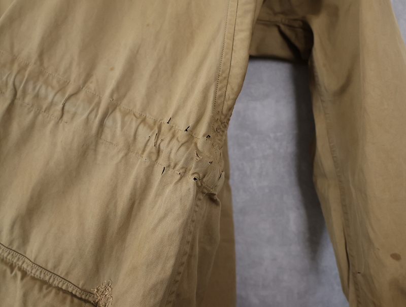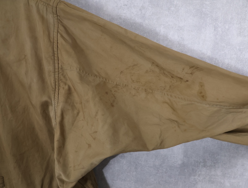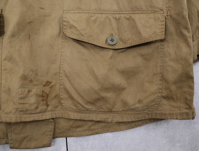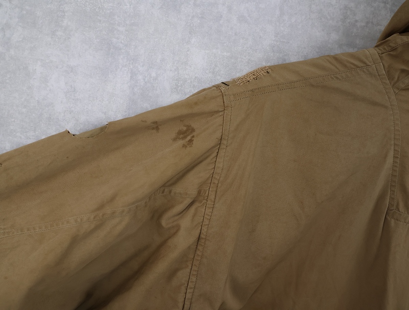 - 生地の劣化による裂け・小穴や、リペア跡、よごれがありますがありますが、雰囲気が出ており、大変かっこいい一点です。