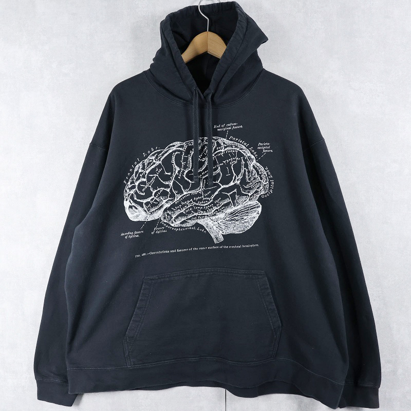 2000's〜 脳解剖図 プリントスウェットフーディー BLACK [161203]