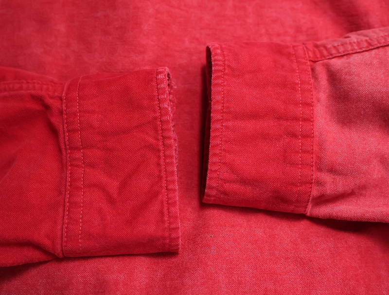 - トップボタン・右胸ポケットのボタンの付け替え、色褪せ、小穴、少しの擦れがありますが、とても雰囲気の良い一点です。
