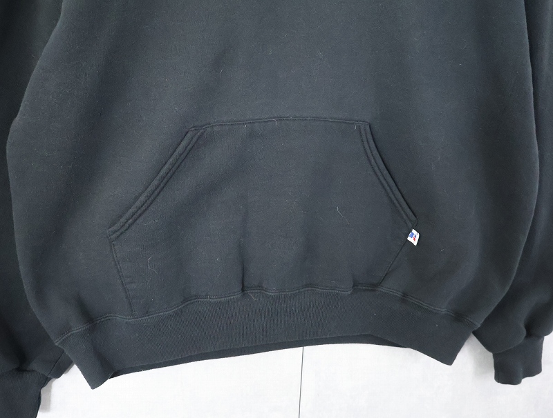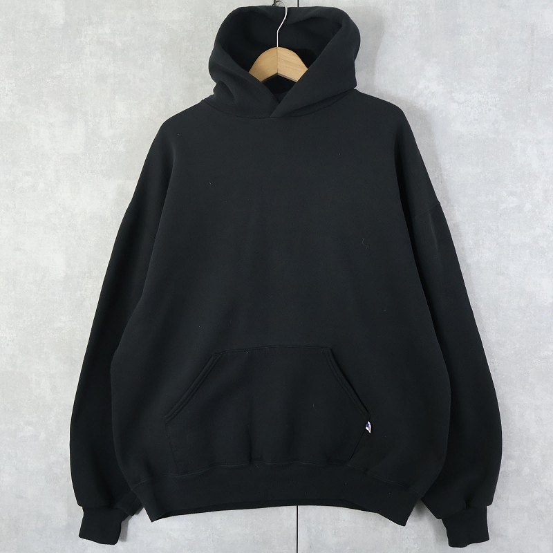 90's RUSSELL ATHLETIC USA製 前V 無地スウェットフーディー BLACK XXL [161226]
