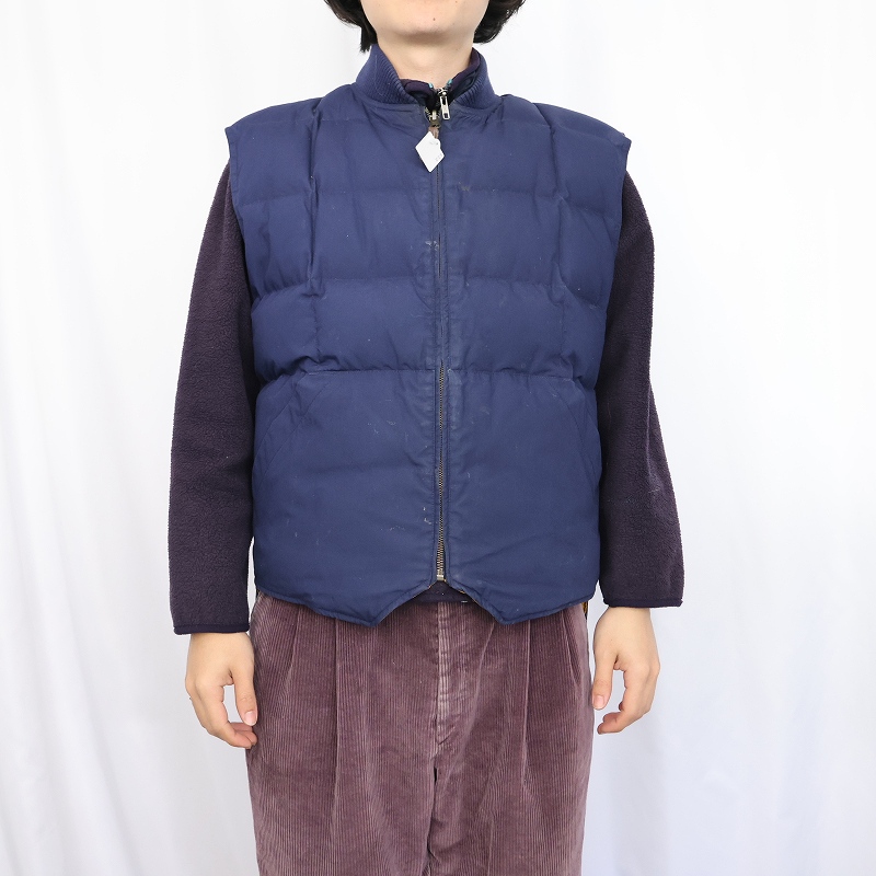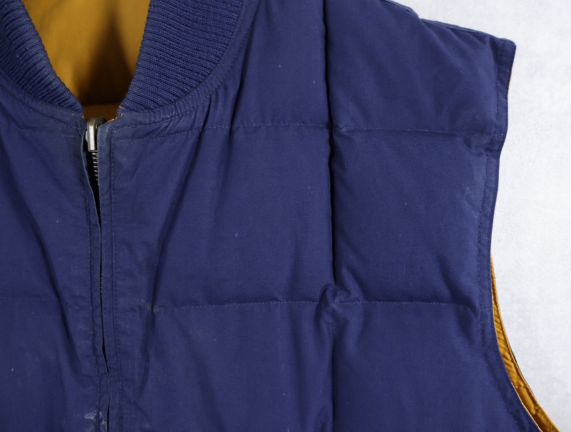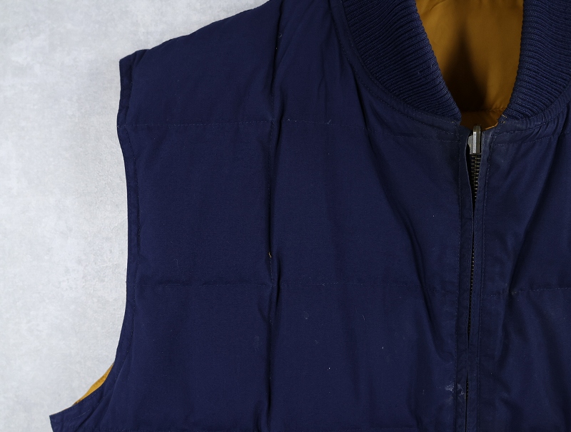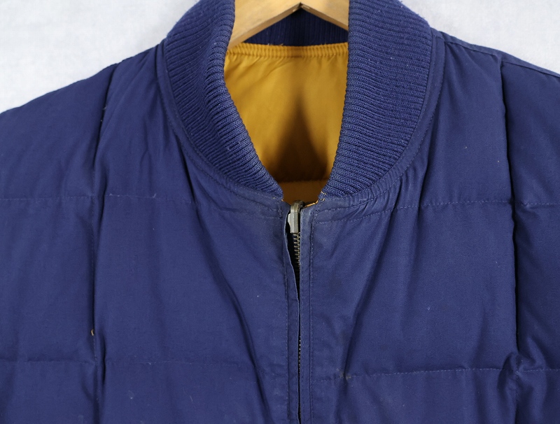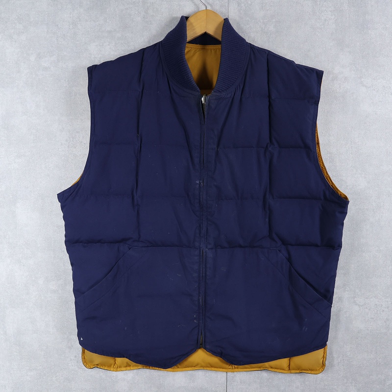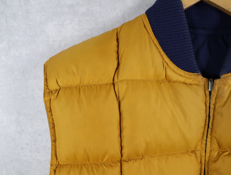 90's Eddie Bauer リバーシブル キルティングダウンベスト NAVY × YELLOW M [161239]