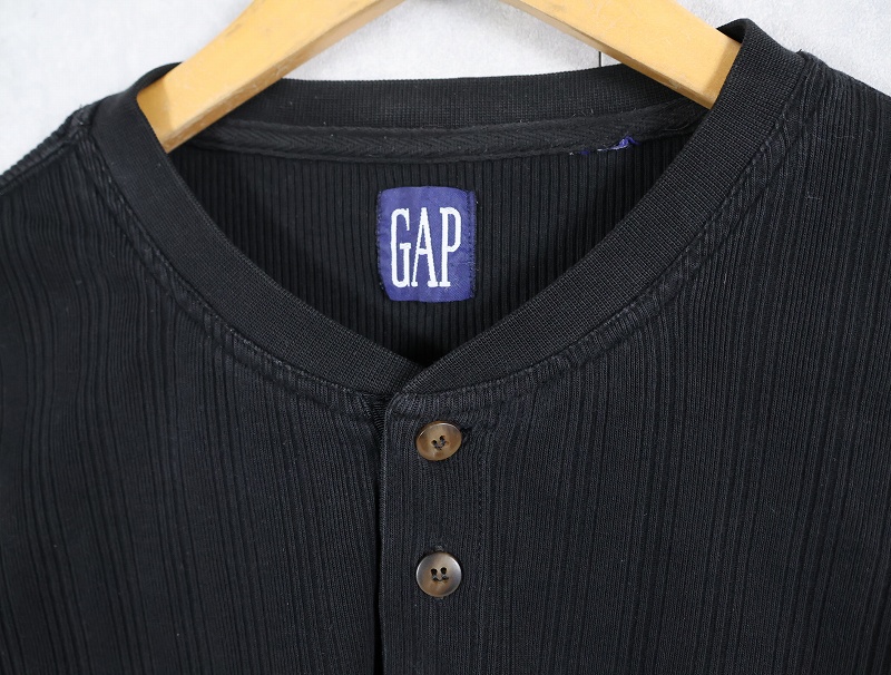 90's GAP ヘンリーネック リブロンT BLACK [161244]
