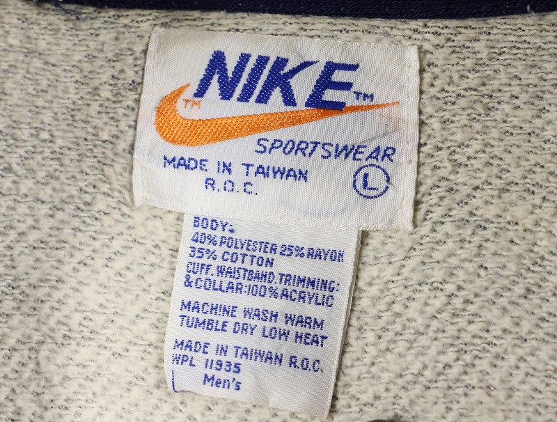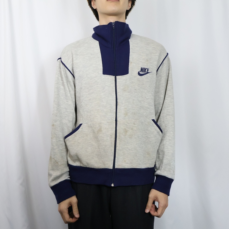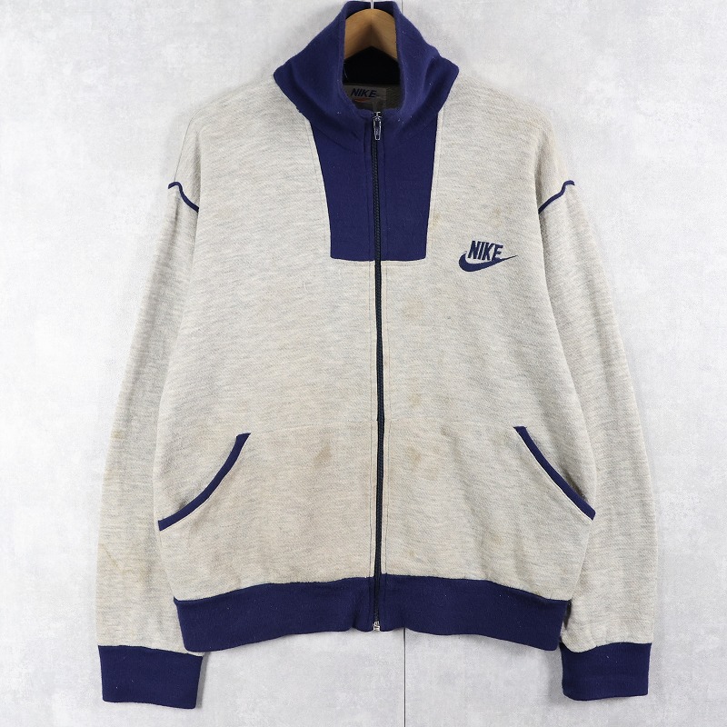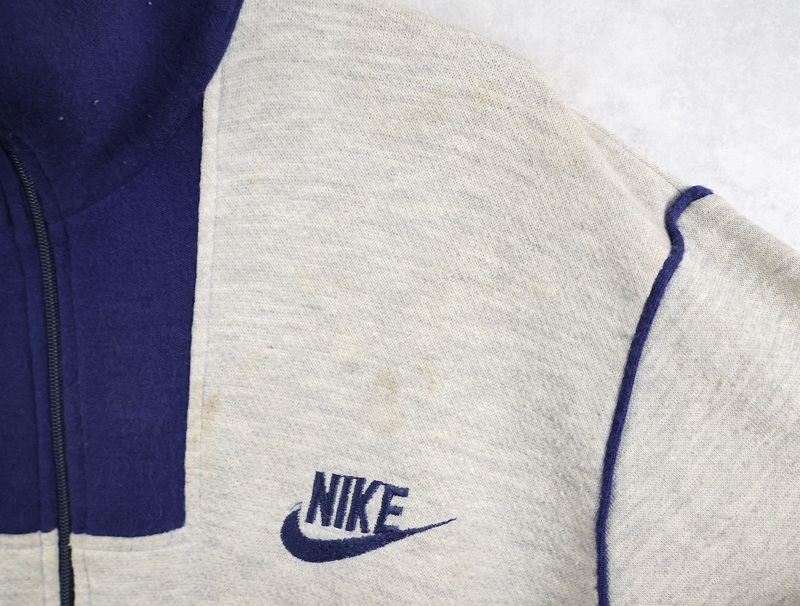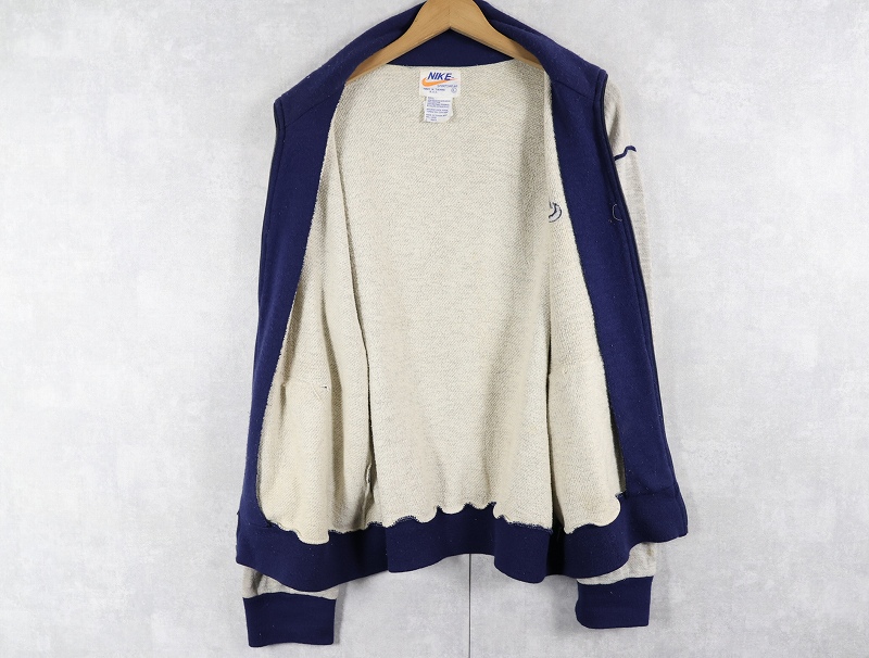 70's NIKE TAIWAN製 オレンジタグ ロゴ刺繍 スウェットジップジャケット L [161261]