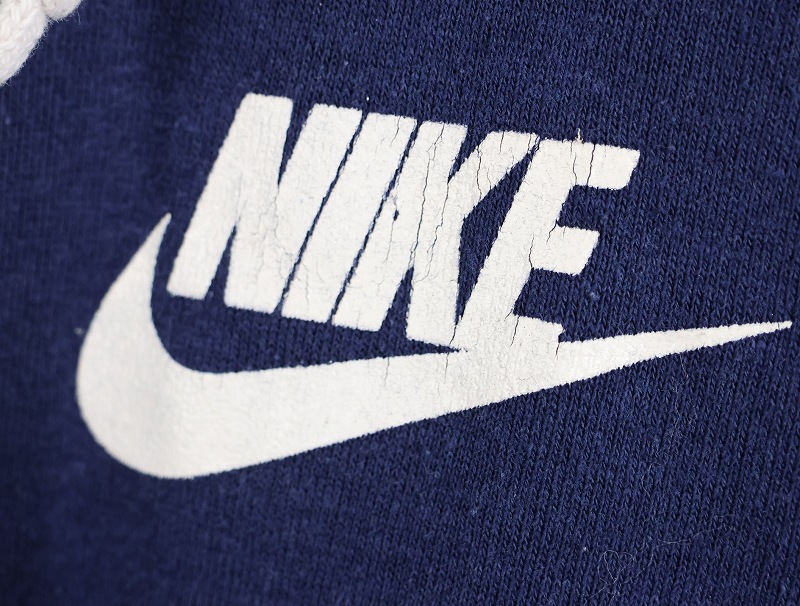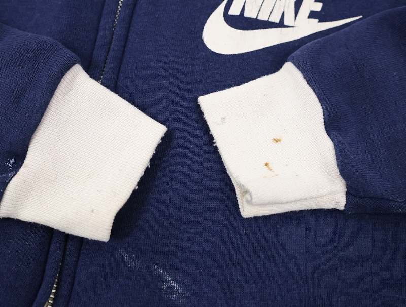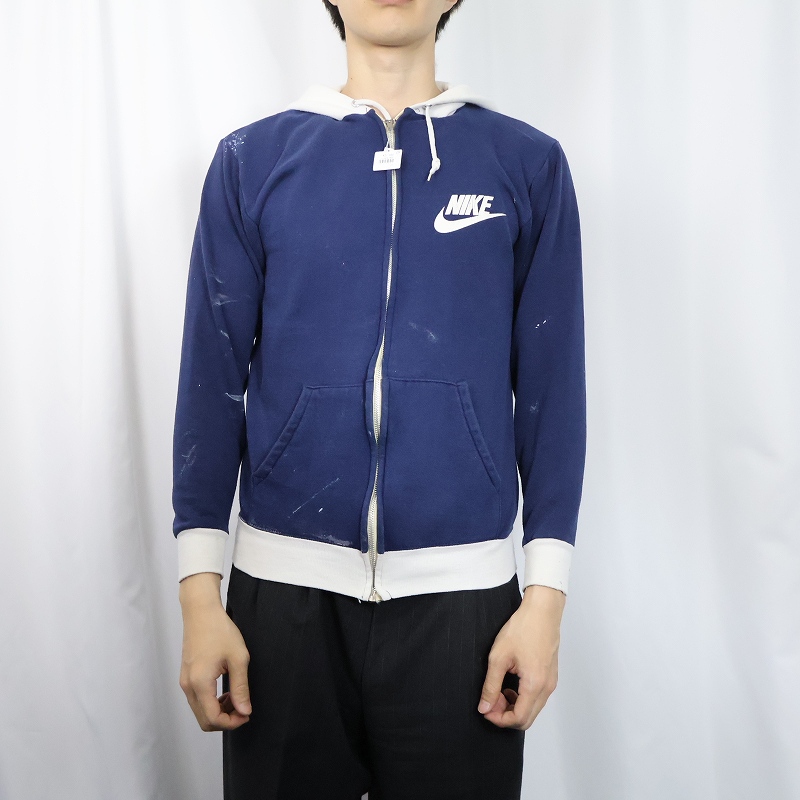 70's NIKE USA製 オレンジタグ ロゴプリント スウェットジップパーカー NAVY M [161262]
