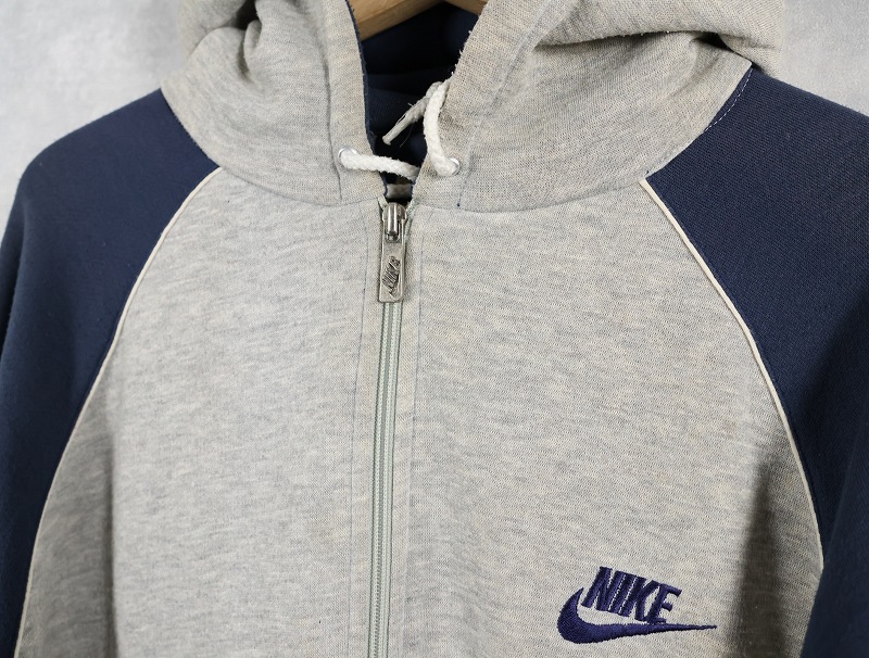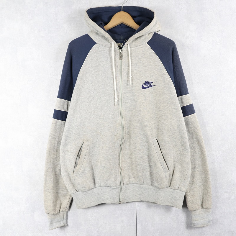 80's NIKE 紺タグ ロゴ刺繍 スウェットジップパーカー XL [161263]