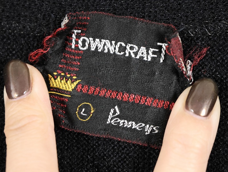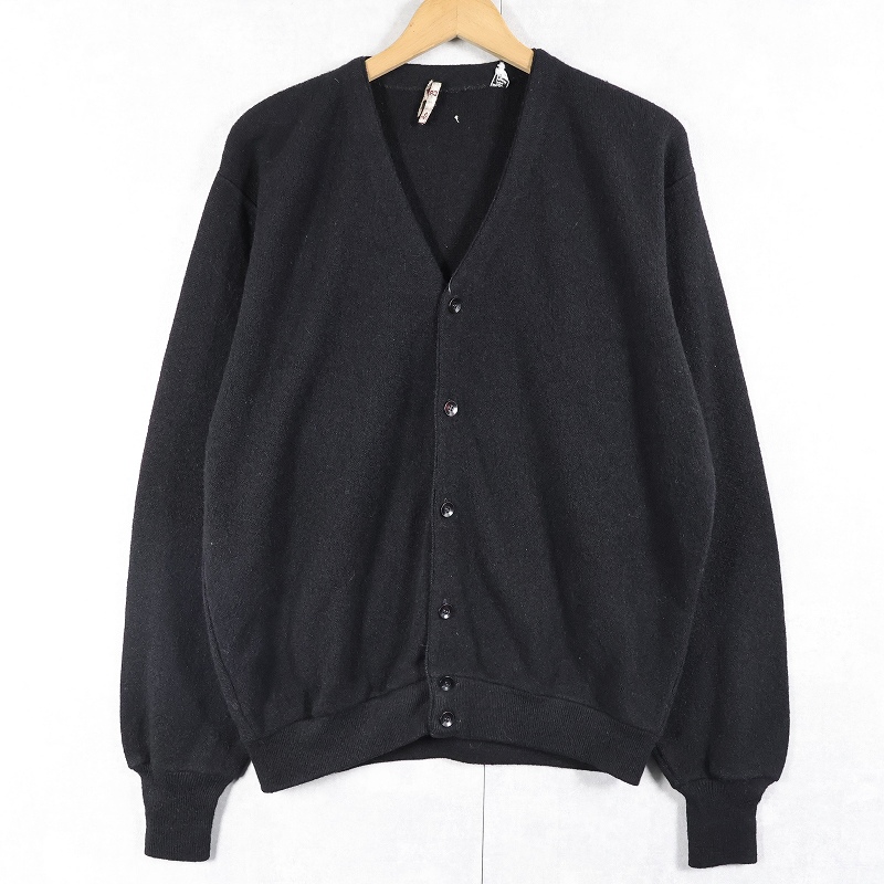 60〜70's TOWNCRAFT Penneys ウールニットカーディガン BLACK L [161265]