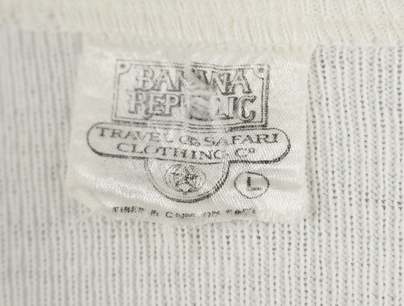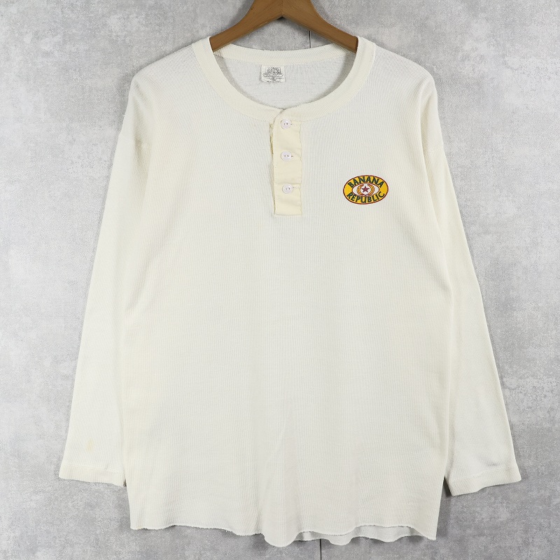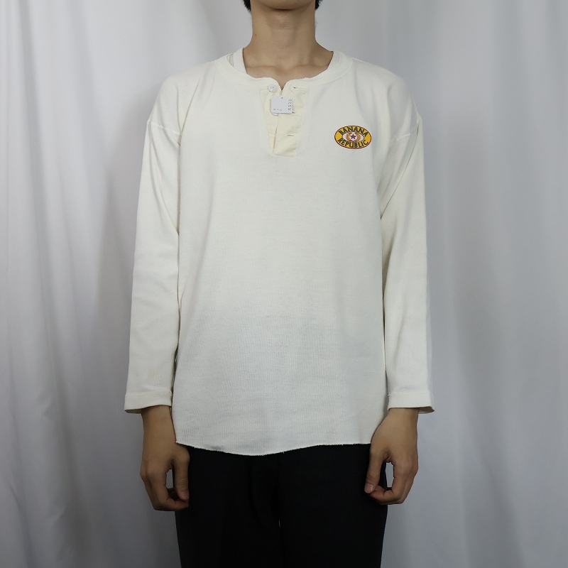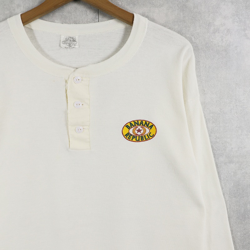 80's BANANA REPUBLIC USA製 猫目ボタン ヘンリーネックアンダーシャツ L [161271]