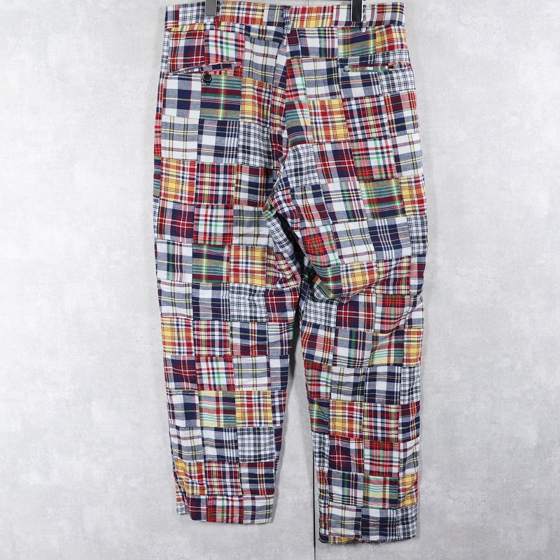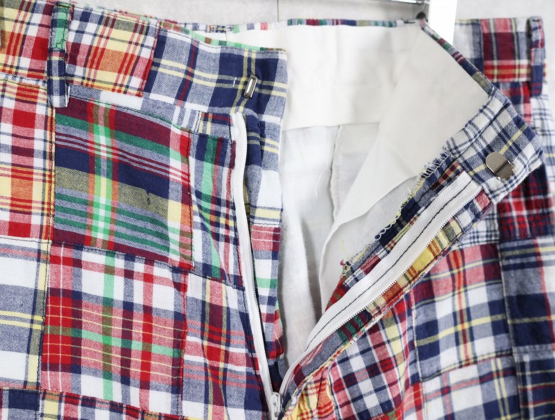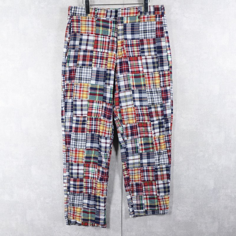 80's〜 USA製 マドラスチェック柄 パッチワークパンツ W34 [161293]