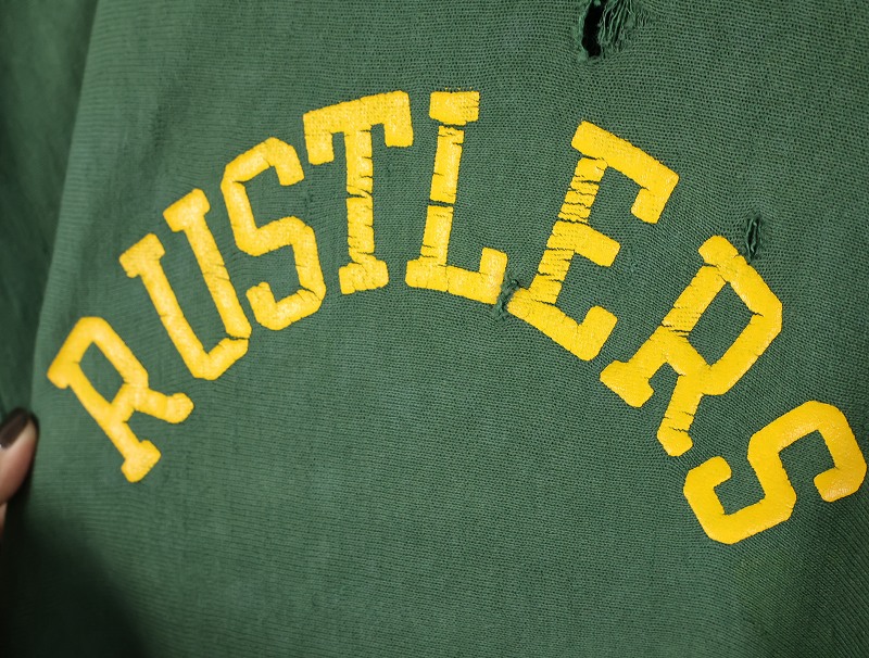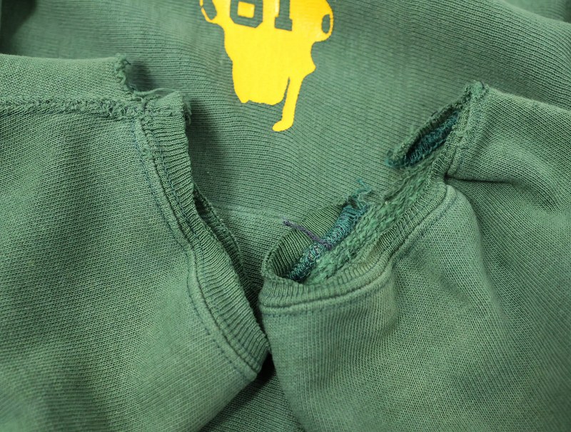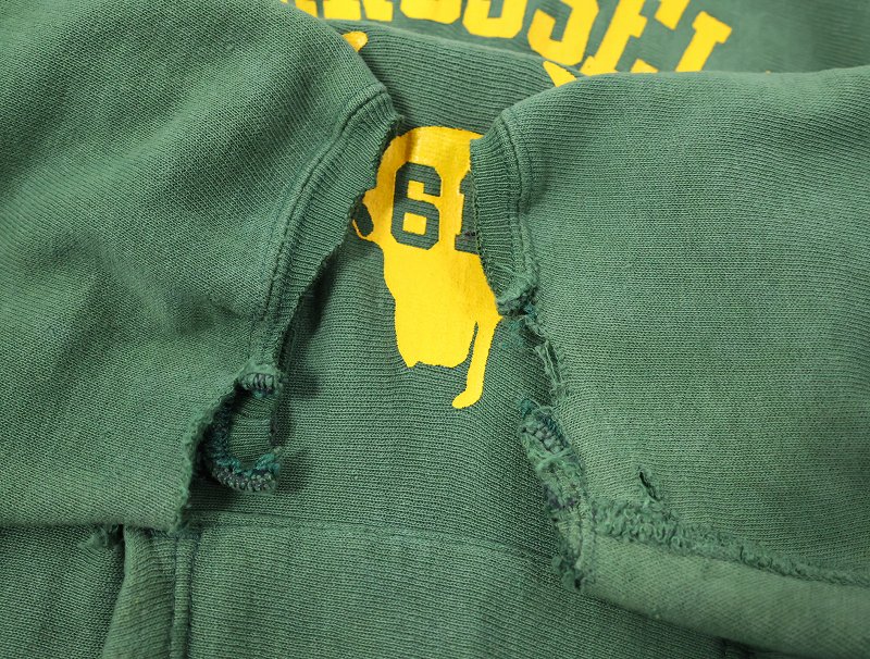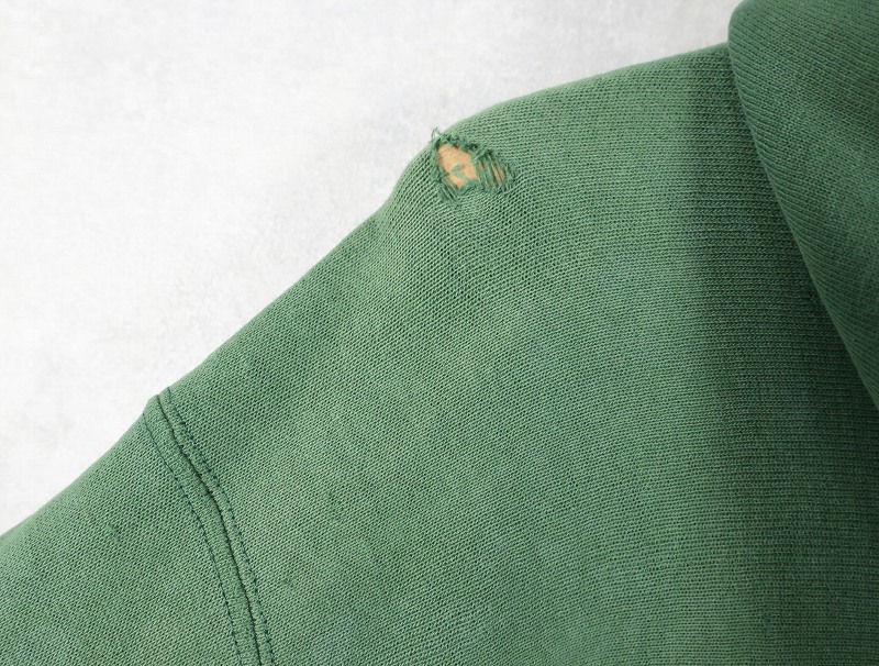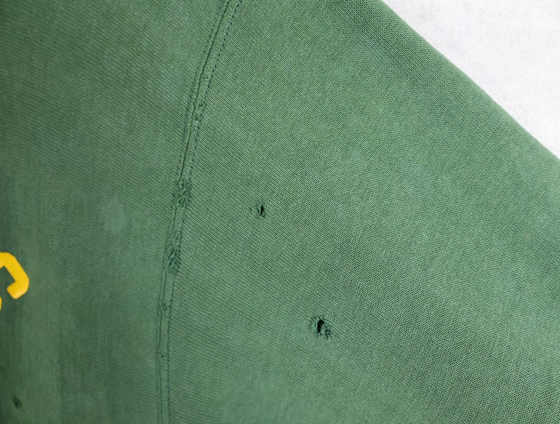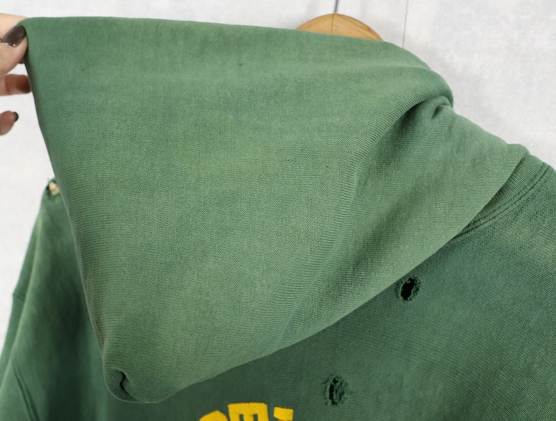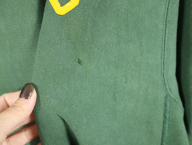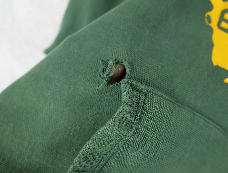 - 汚れやダメージ、穴や日焼け、プリントのひび割れや袖のカットがあり、ビンテージらしい良い雰囲気が出ており、大変かっこいい一点です。