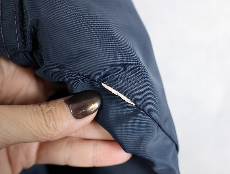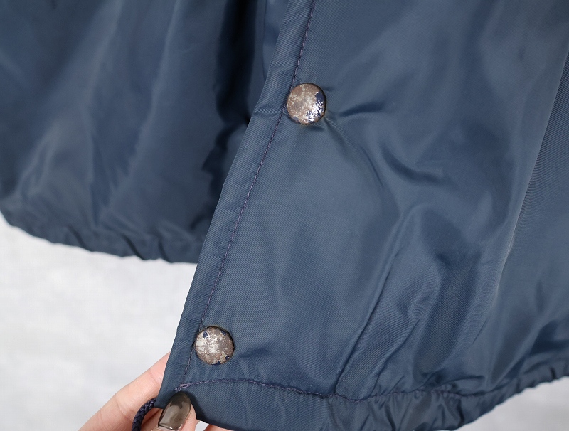 ※一番上のスナップボタンがダメージと劣化で取り外し不可能となっております。また、右袖のゴムが劣化で硬くなっております。