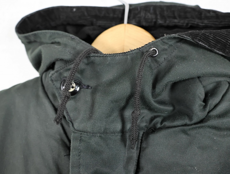 フードは収納型ではなく、内部はコーデュロイ生地が使用されます。