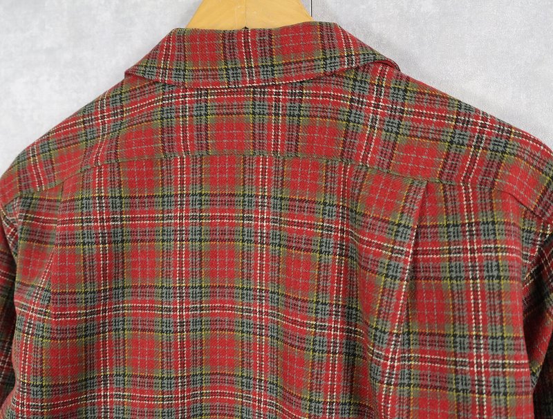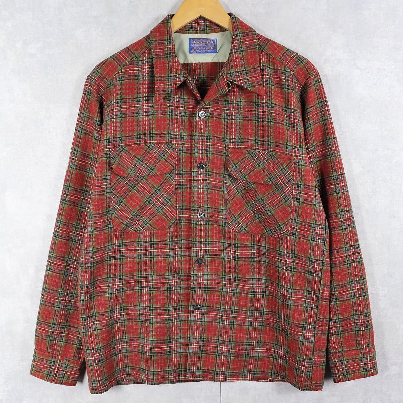 70's PENDLETON USA製 チェック柄 ウールオープンカラーシャツ M [161388]