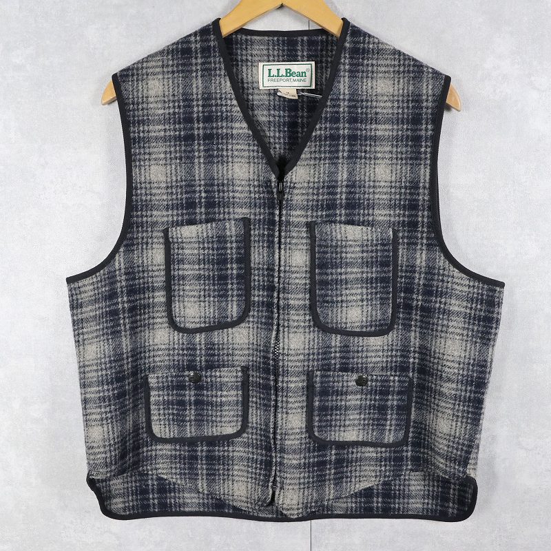 80's L.L.Bean USA製 チェック柄 ウールベスト M [161397]