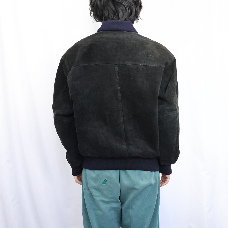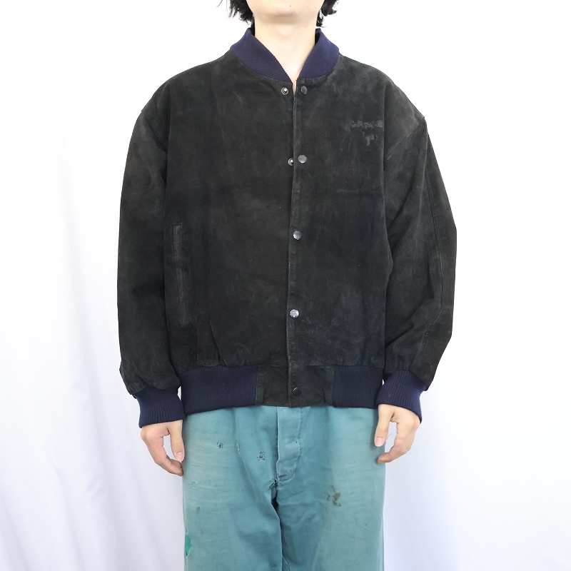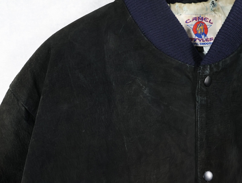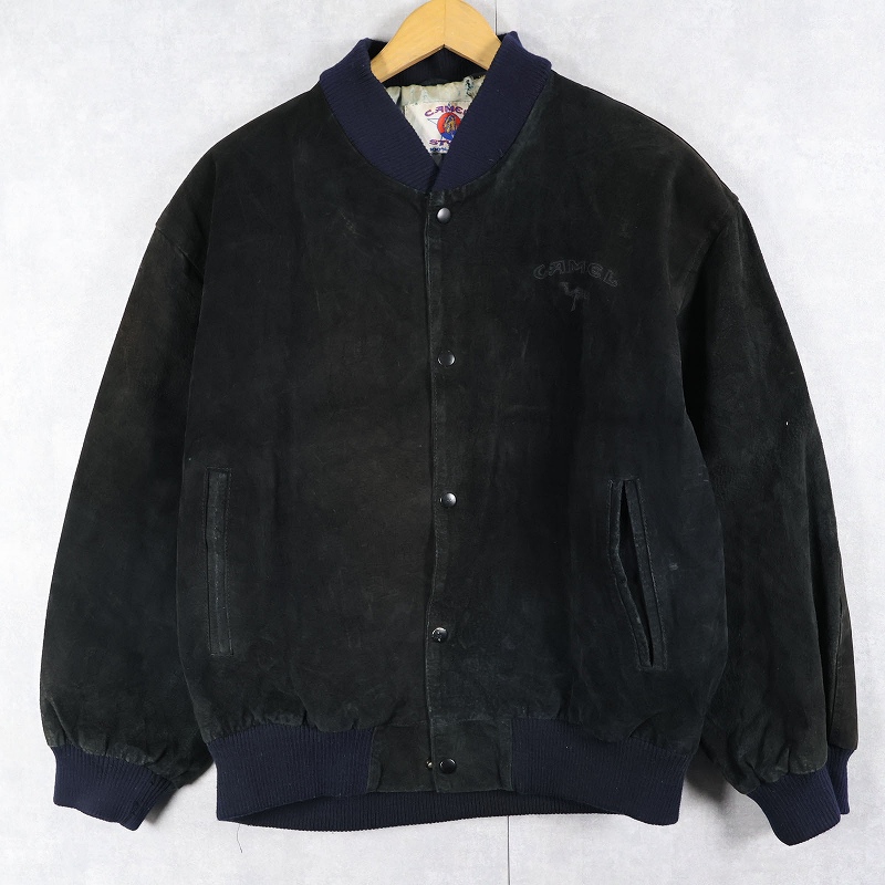 90's CAMEL STYLES ロゴ刺繡 スエードレザージャケット BLACK L [161403]