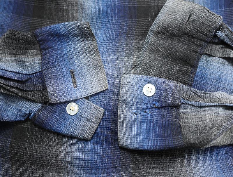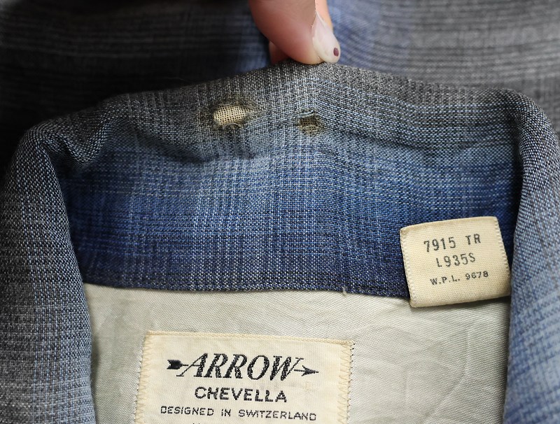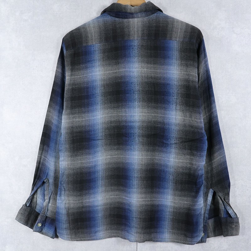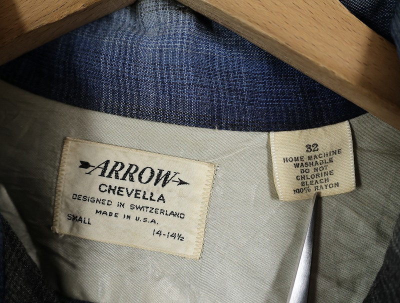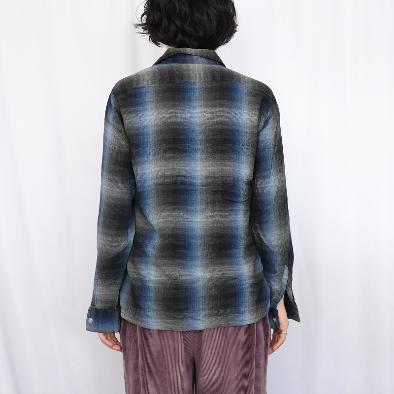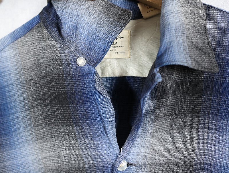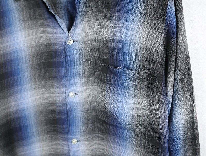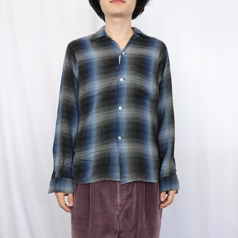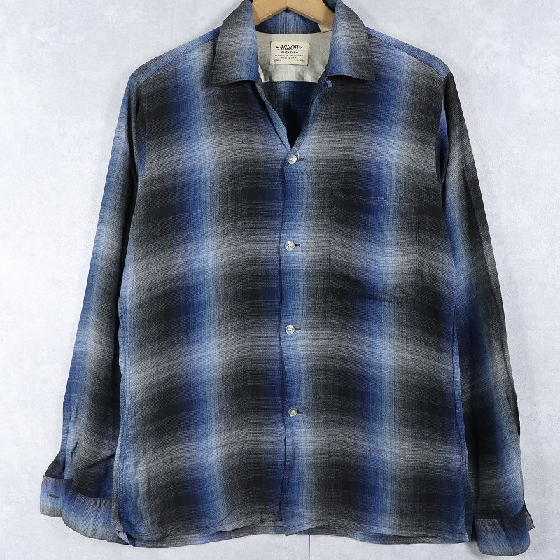 60's ARROW CHEVELLA USA製 オンブレーチェック柄 レーヨンオープンカラーシャツ S [161415]
