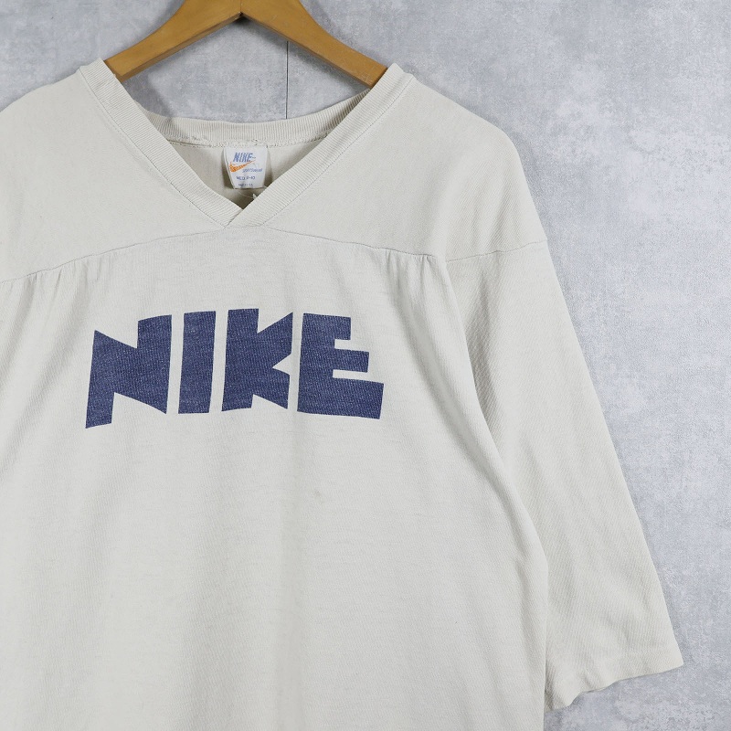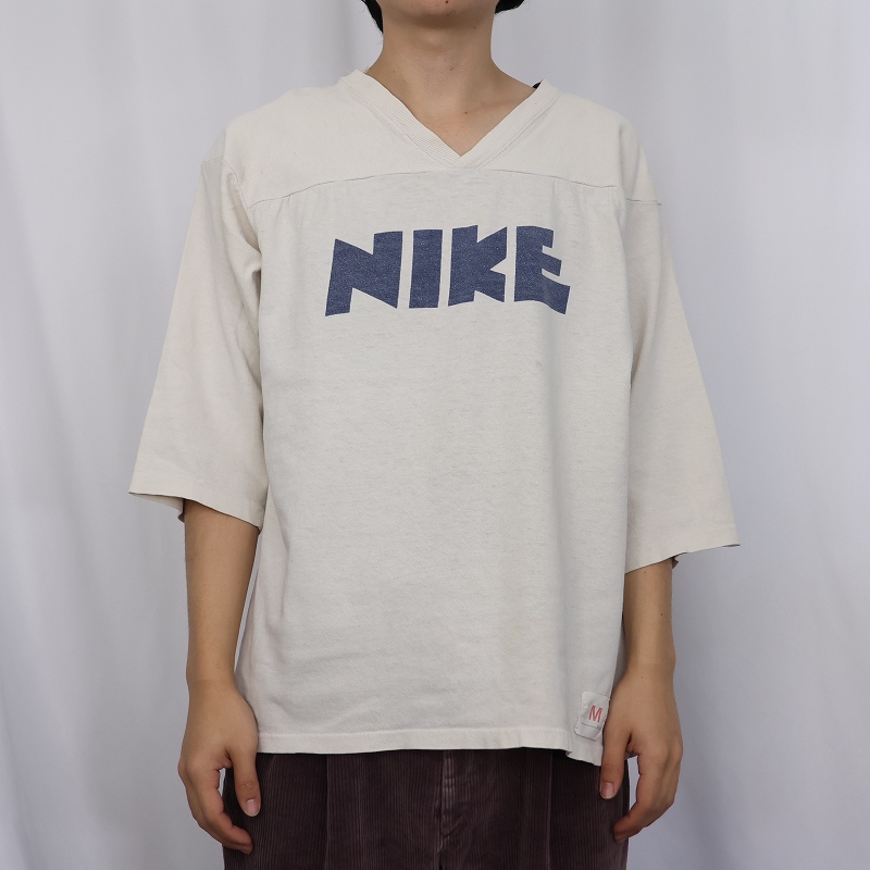 70's NIKE USA製 "ゴツナイキ" 染み込みプリント フットボールTシャツ MED 38-40 [161422]
