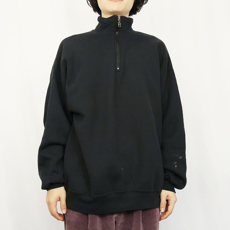 90's RUSSELL ATHLETIC USA製 ハーフジップスウェット BLACK XXL [161484]