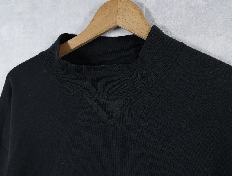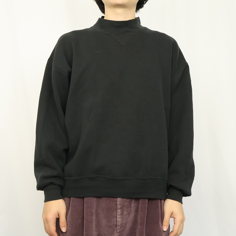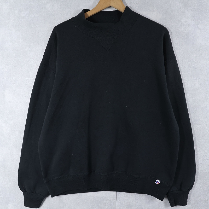 90's RUSSELL ATHLETIC USA製 前V モックネックスウェット BLACK XL [161485]
