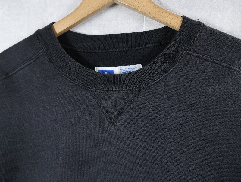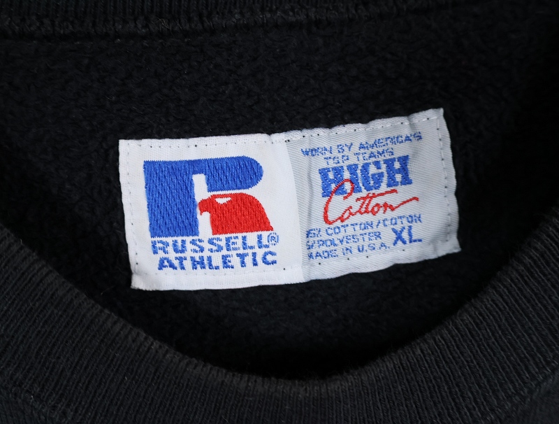 90's RUSSELL ATHLETIC "HIGH COTTON" USA製 前V スウェット BLACK XL [161486]
