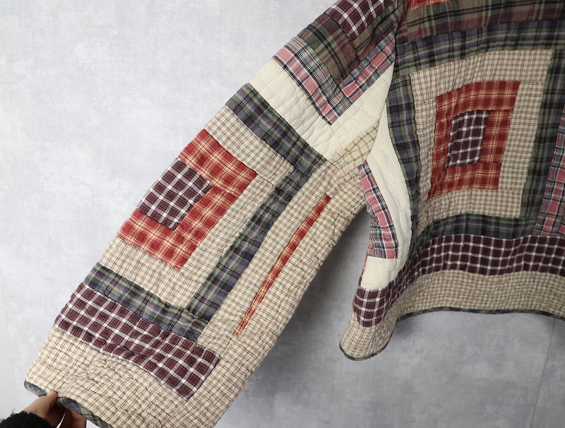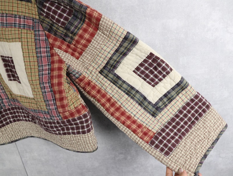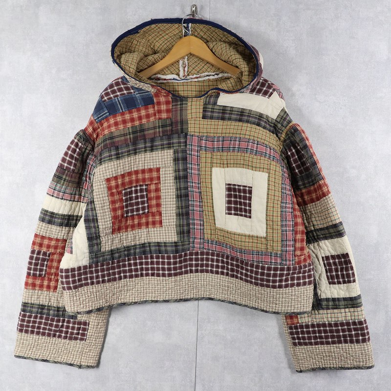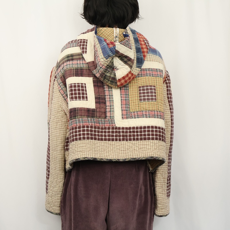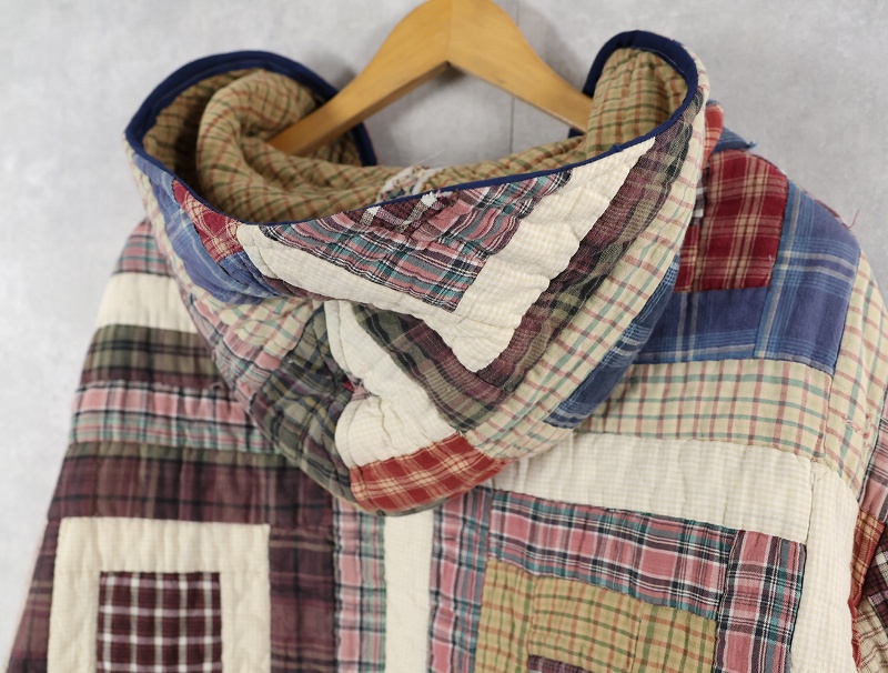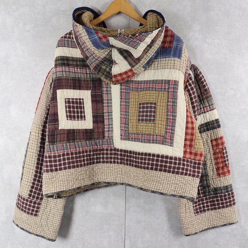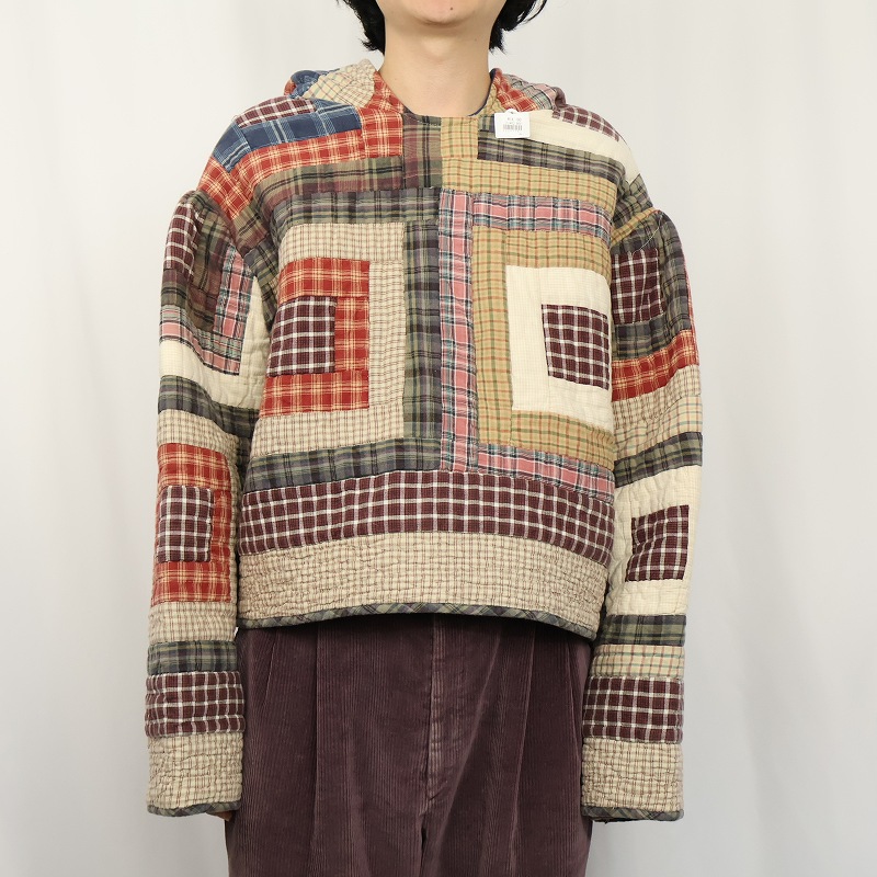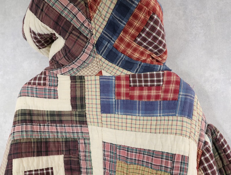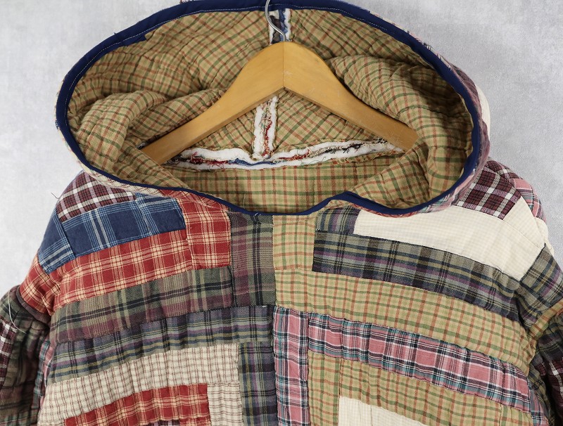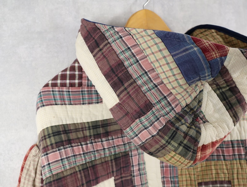 チェック柄 パッチワーク キルティングフーディー [161502]