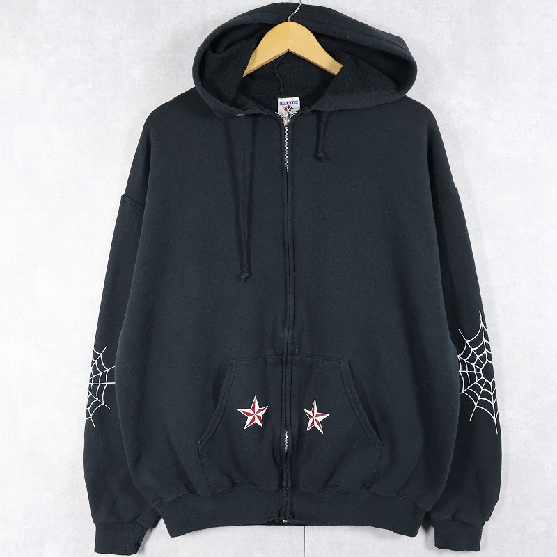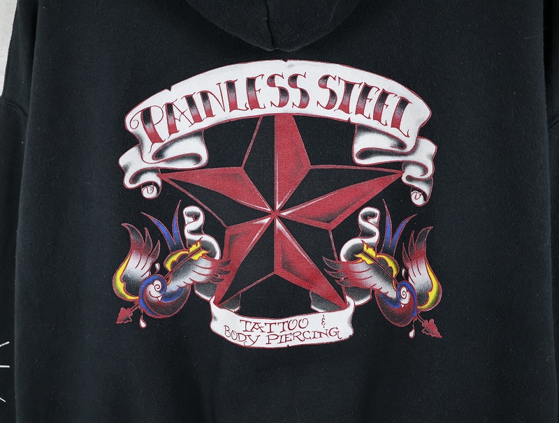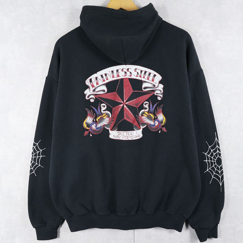 PAINLESS STEEL タトゥー&ボディピアスショップ プリントスウェットジップパーカー BLACK XL [161521]