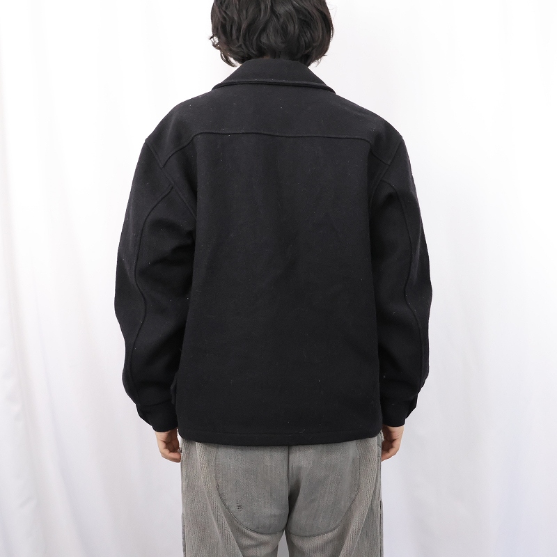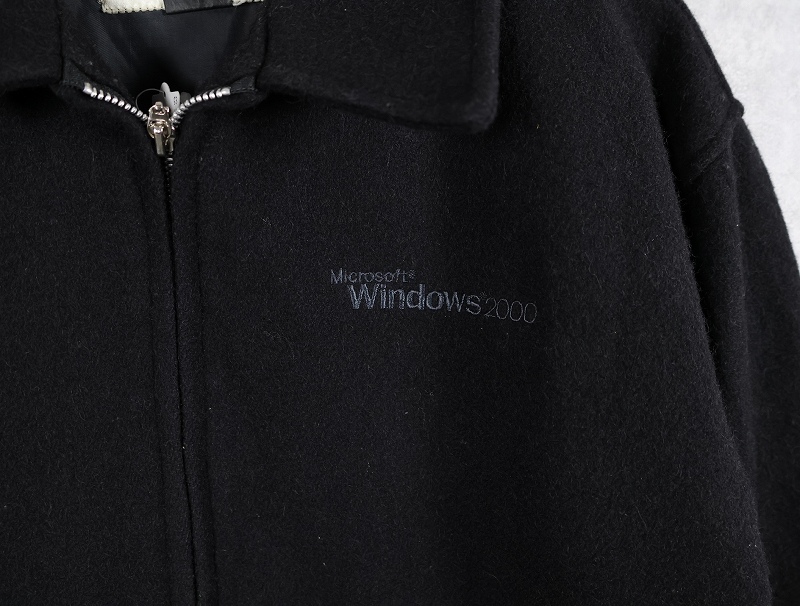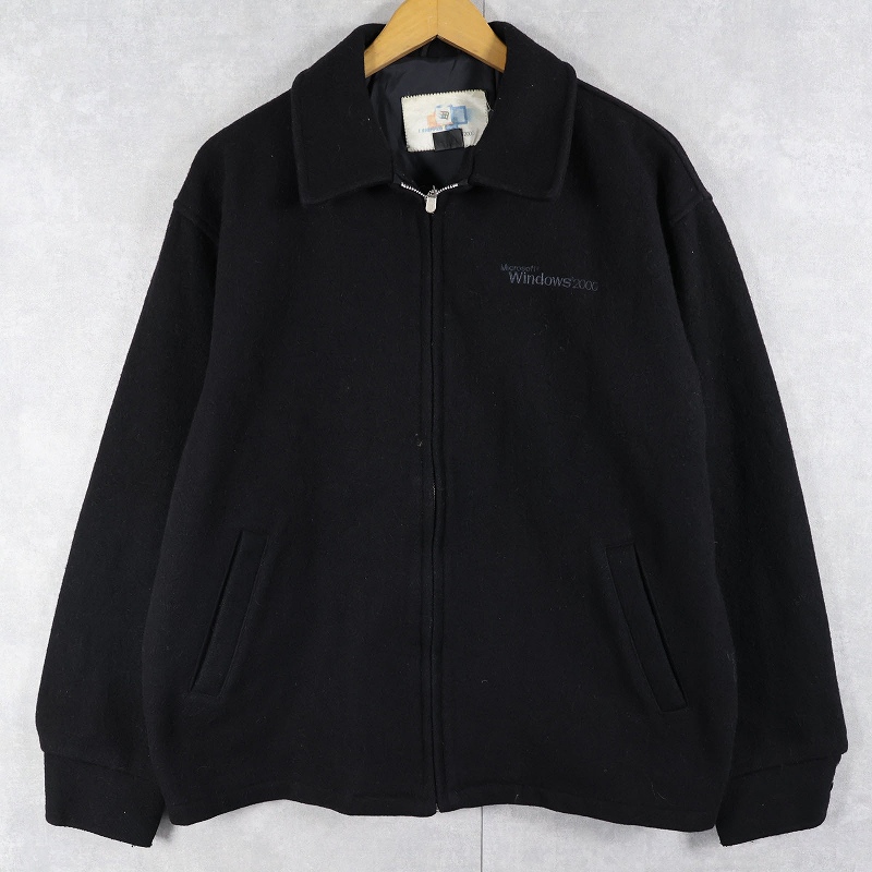 2000's Windows CANADA製 ロゴ刺繍 ウールジップジャケット BLACK L [161524]