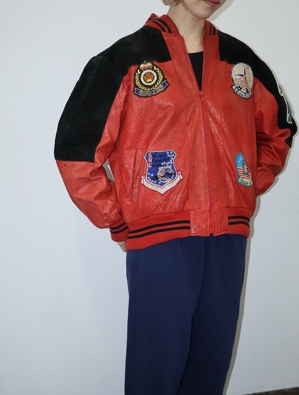 80's WORLD OF TROOP パッチ付き 切り替えデザイン レザースタジャン S [161528]