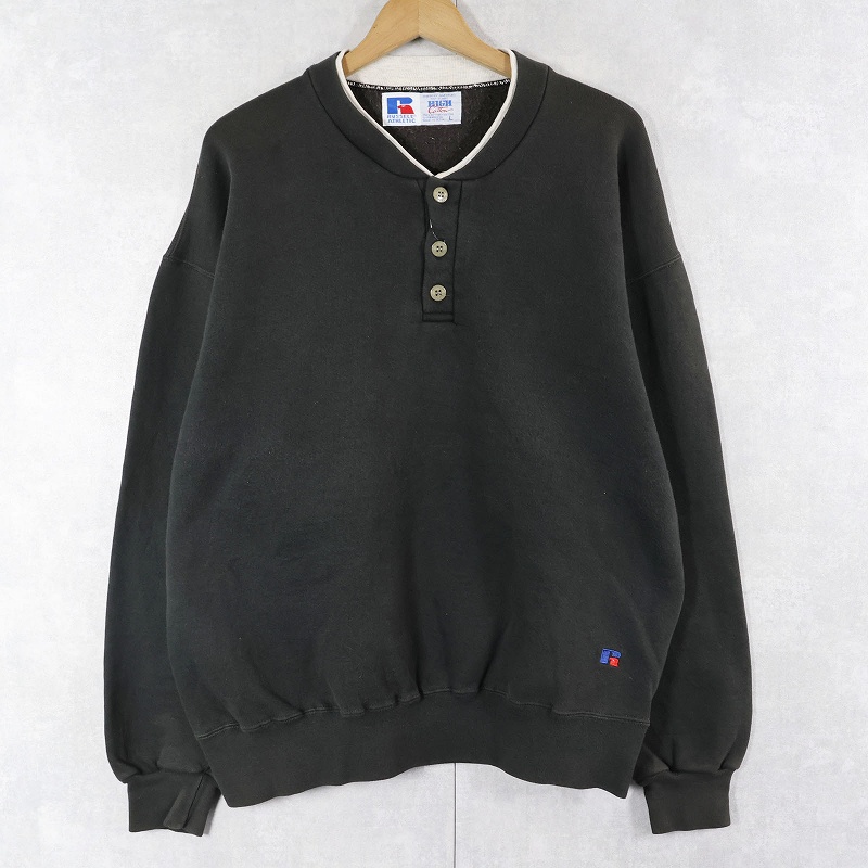 90's RUSSELL ATHLETIC USA製 "HIGH COTTON" ヘンリーネックスウェット BLACK L [161542]