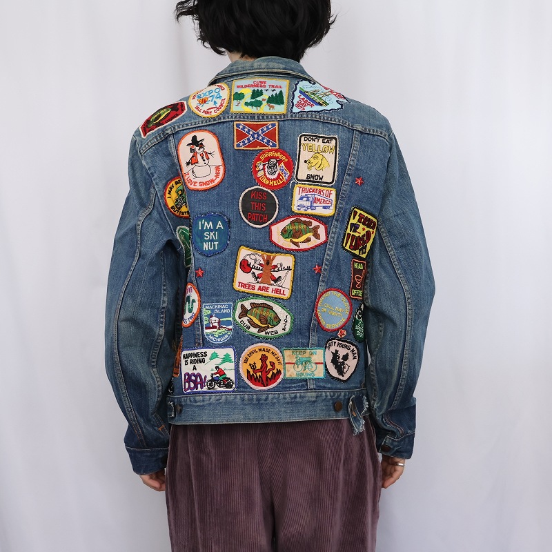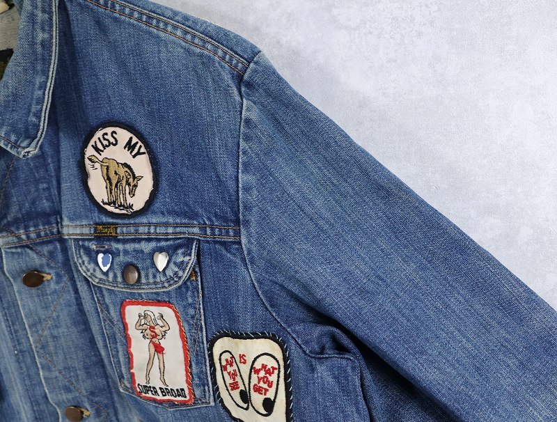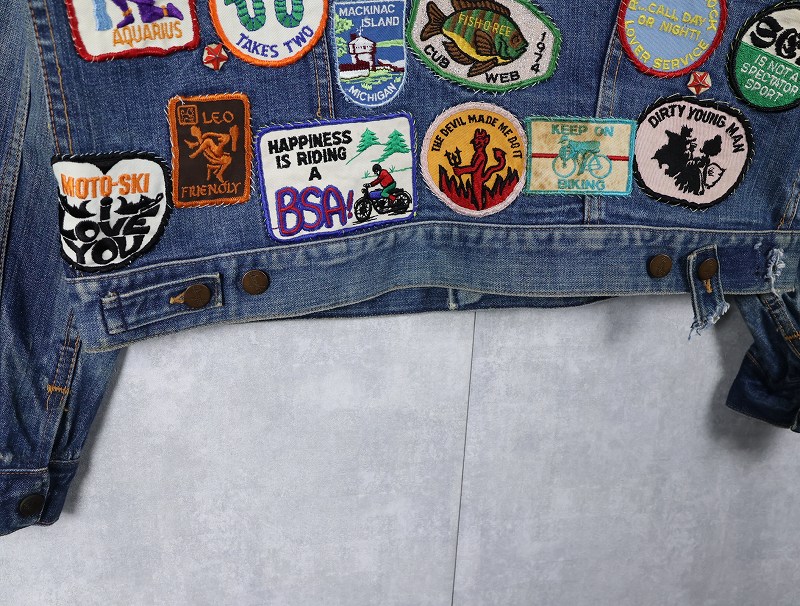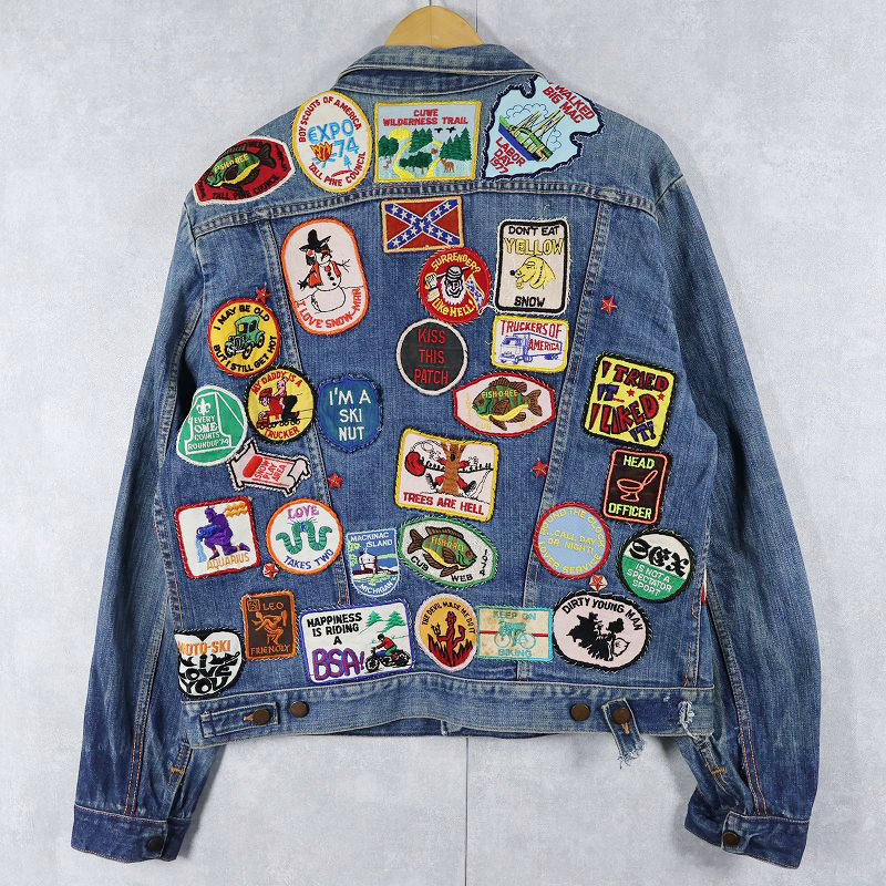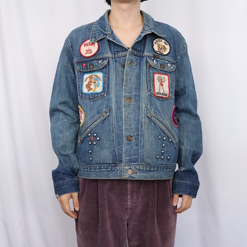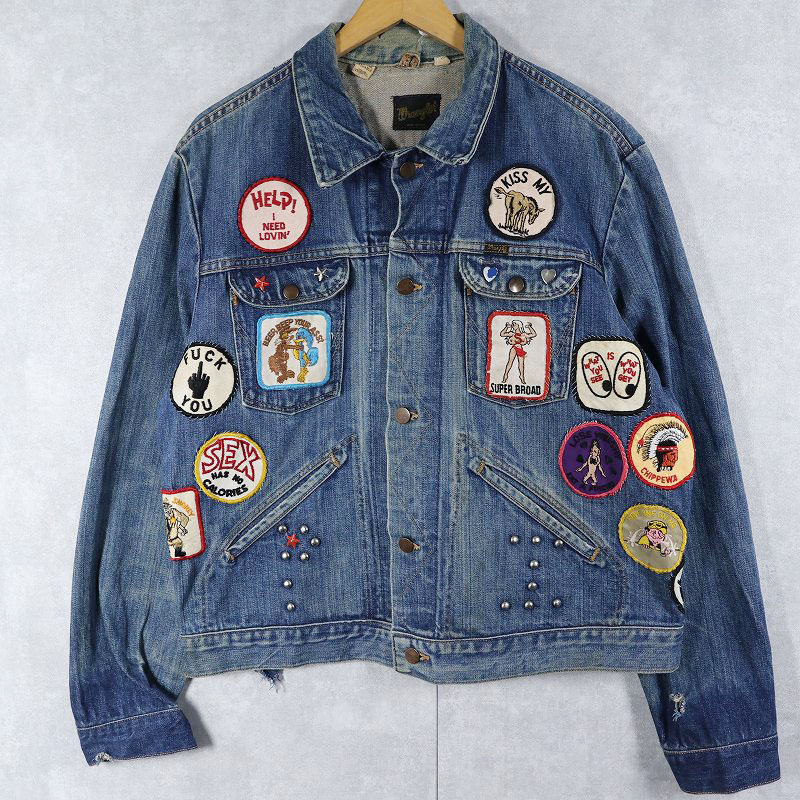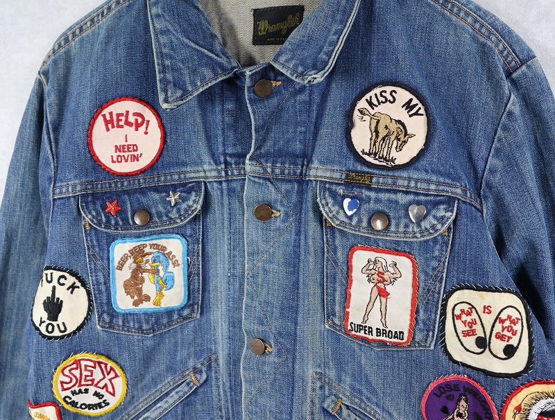70's Wrangler 124MJ USA製 ワッペンカスタム デニムジャケット SIZE48 [161544]