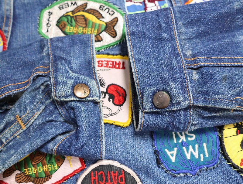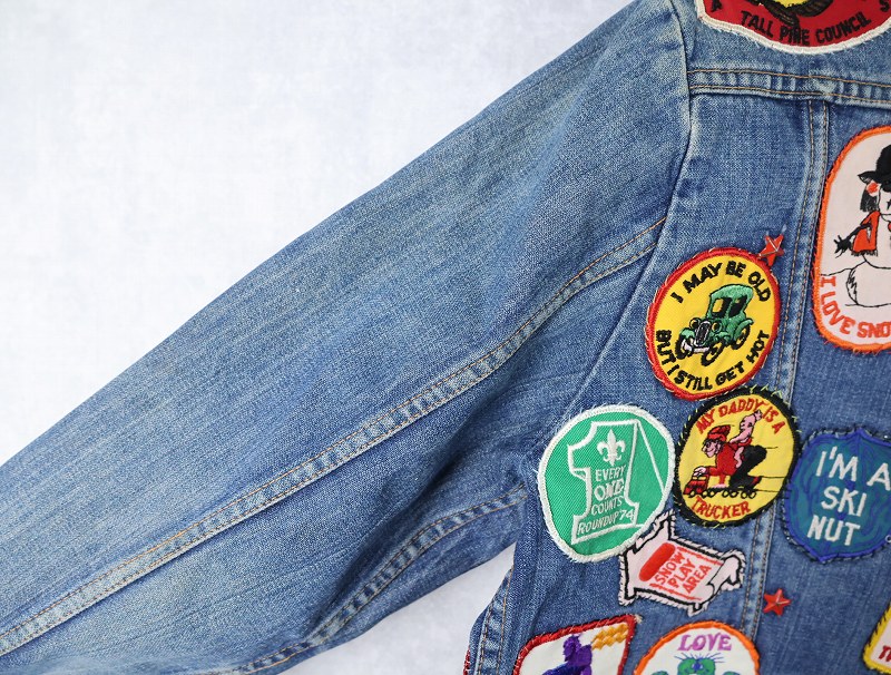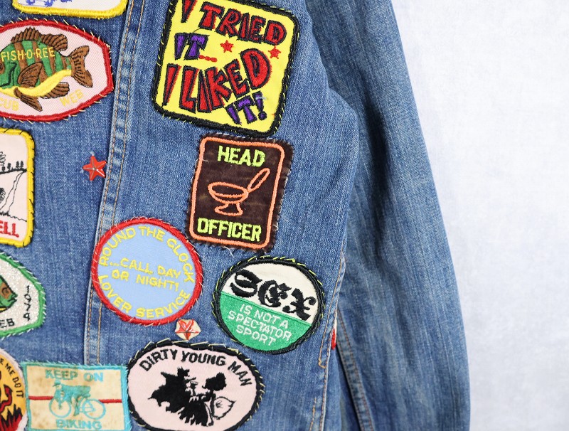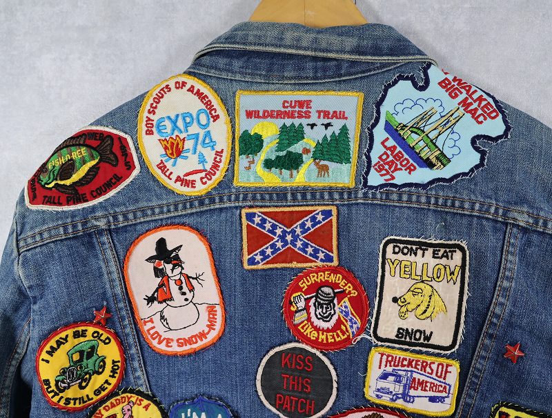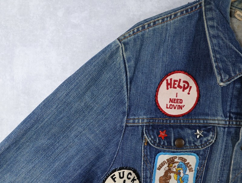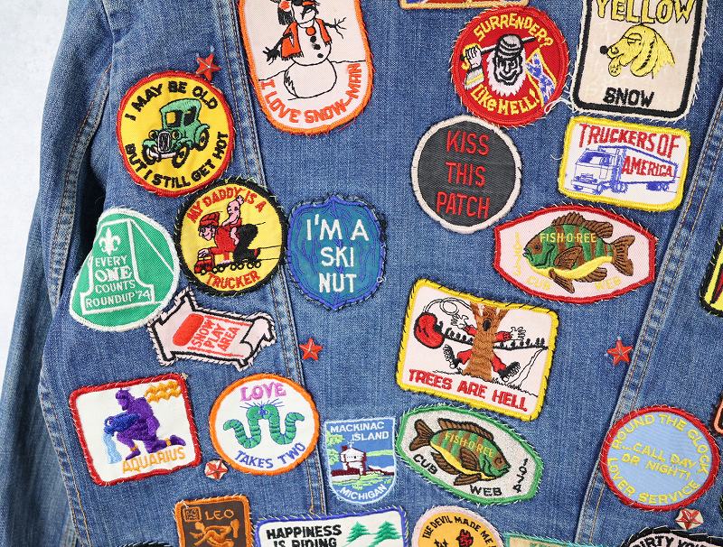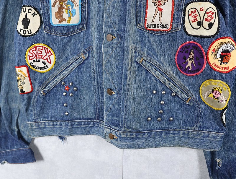 70's Wrangler 124MJ USA製 ワッペンカスタム デニムジャケット SIZE48 [161544]